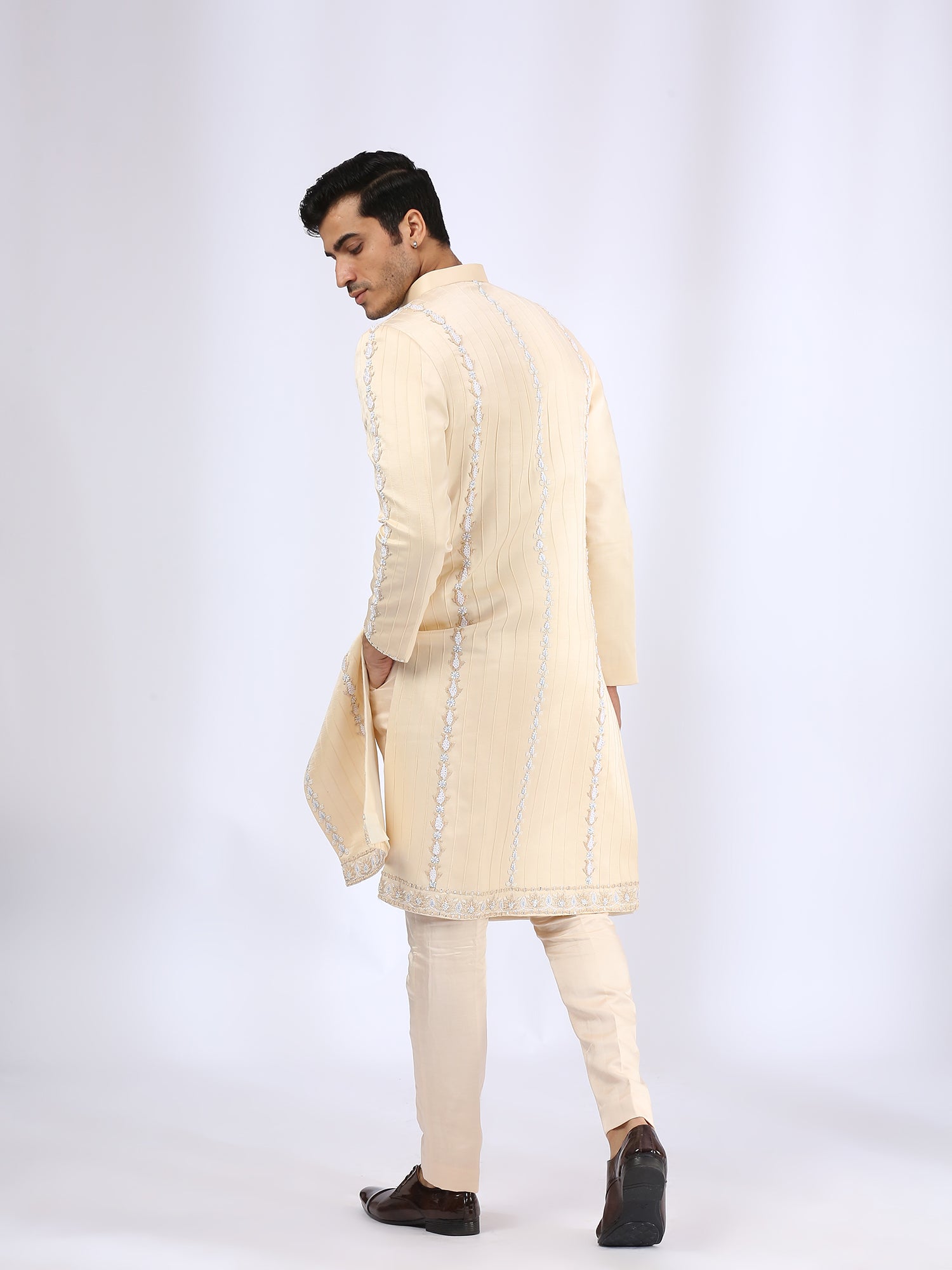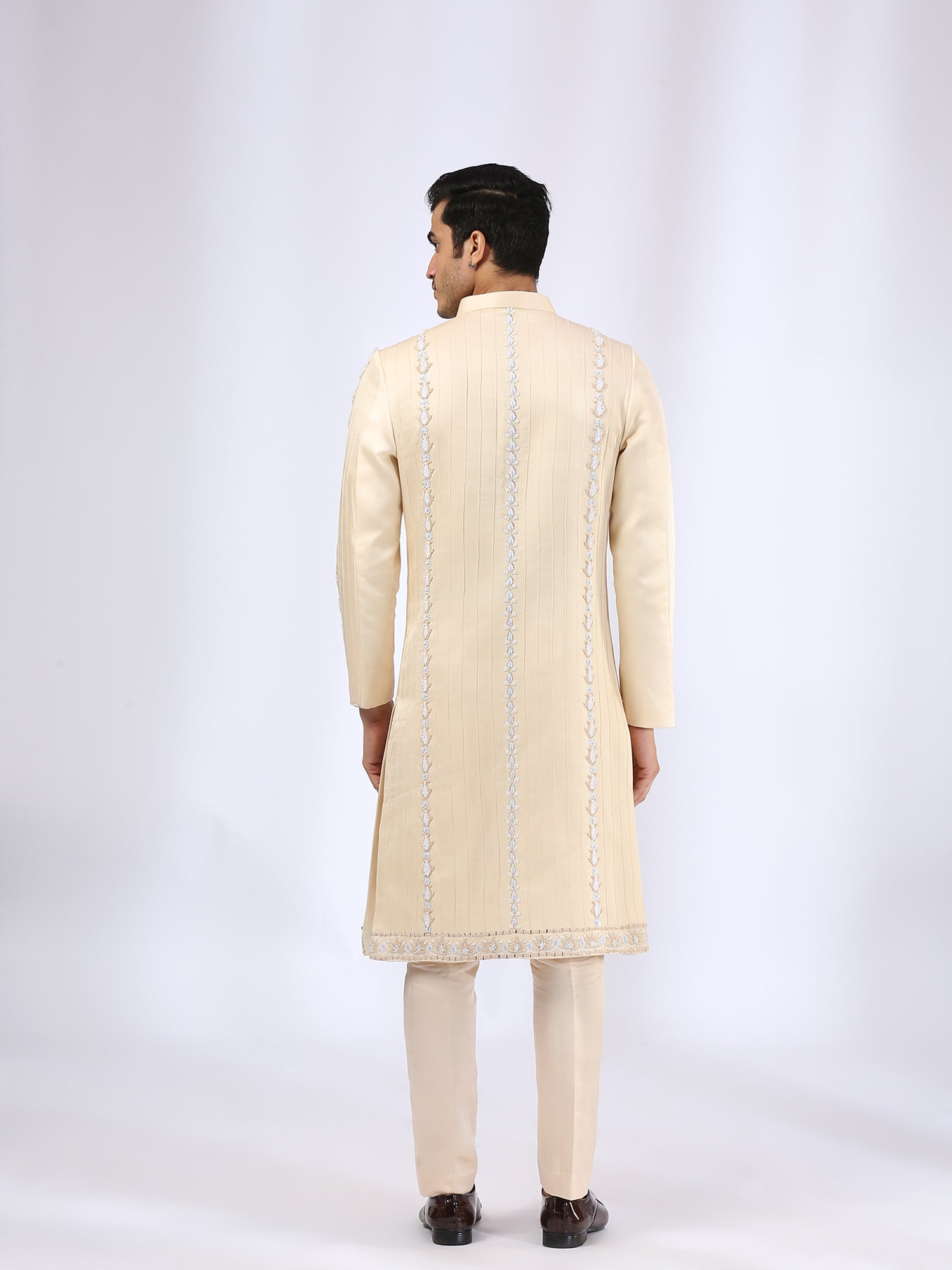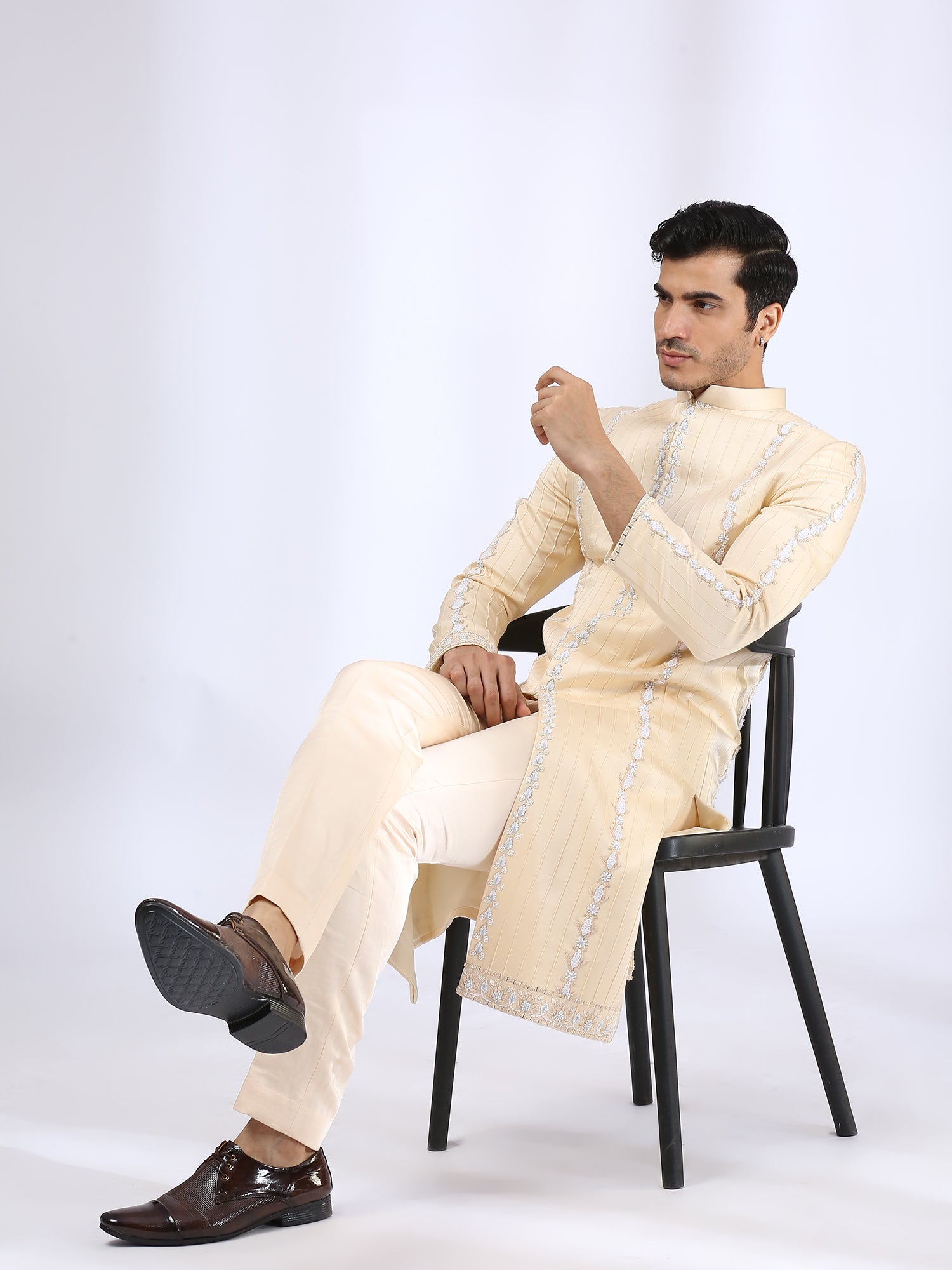 Beige Embroidered Sherwani with Matching Narrow Pants