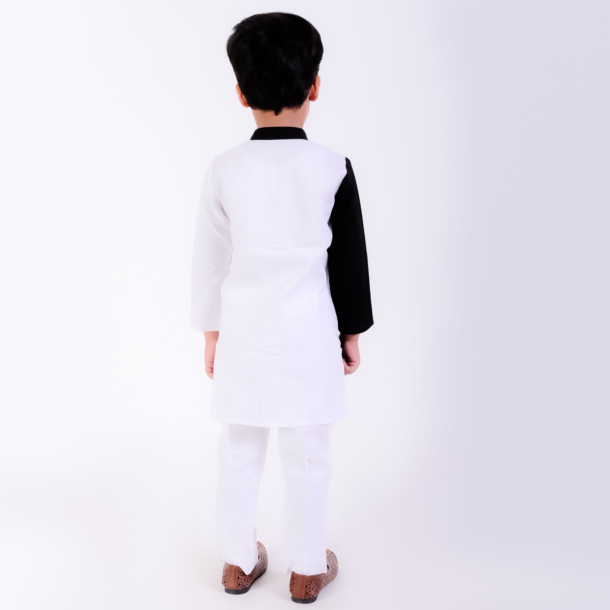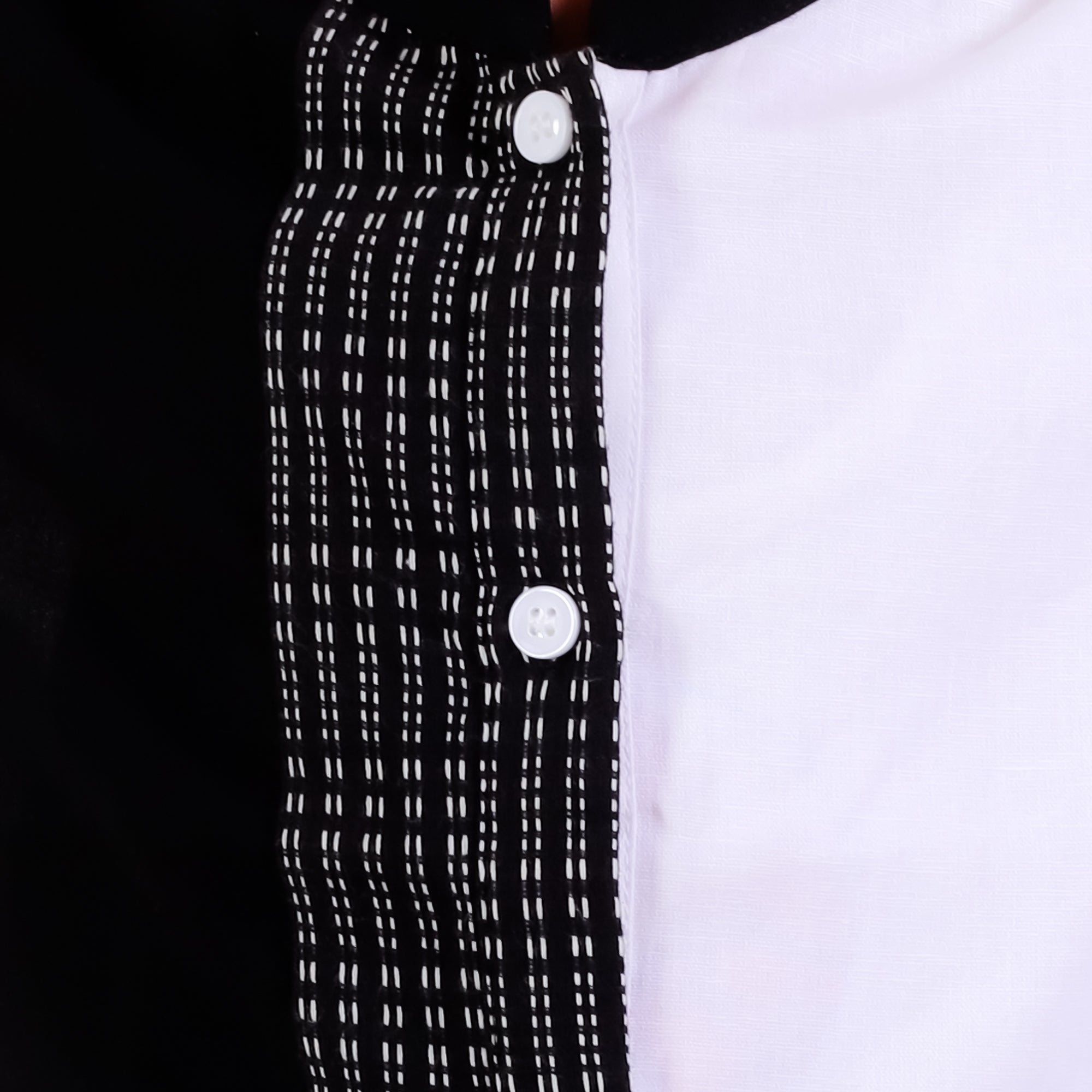 Black & Ivory full sleeves kurta with colorblocking detail. Paired with a pant.