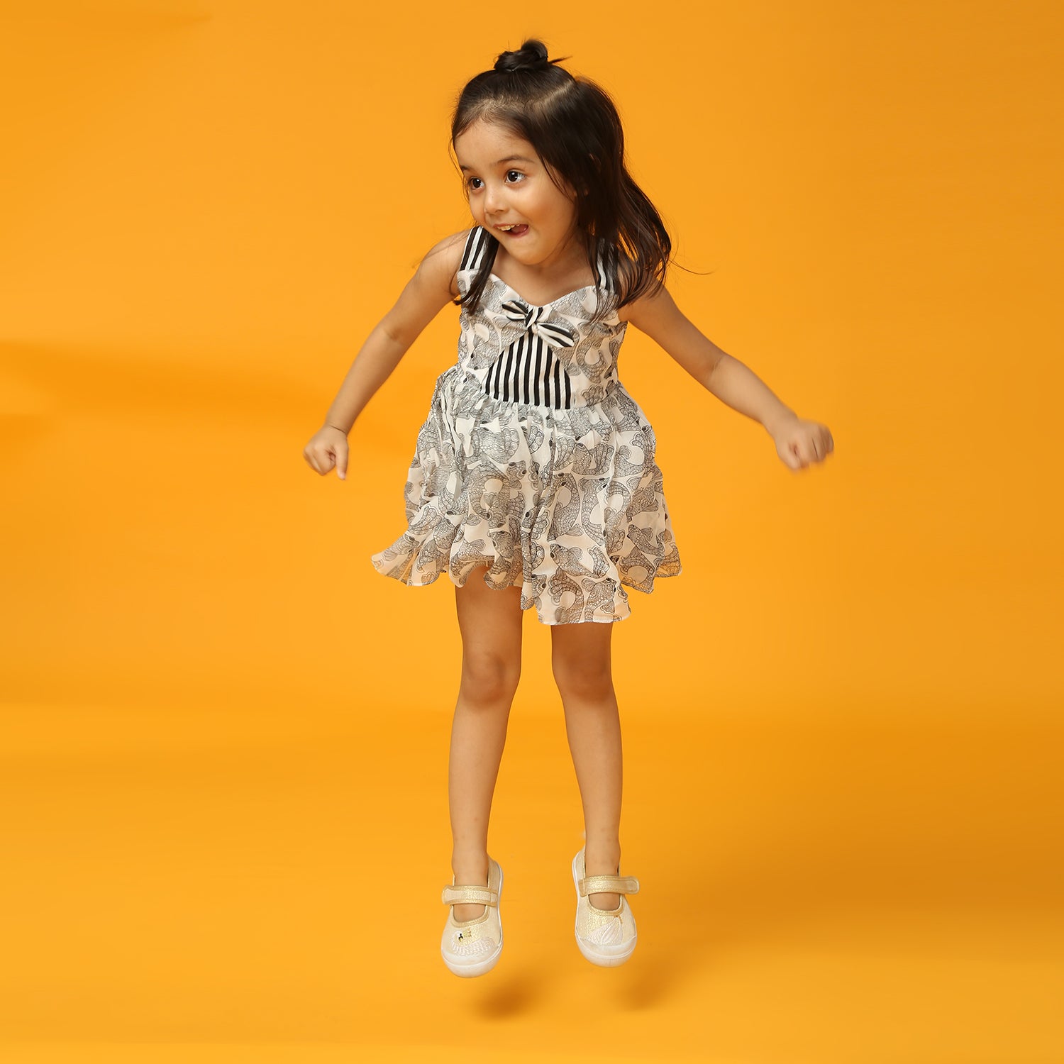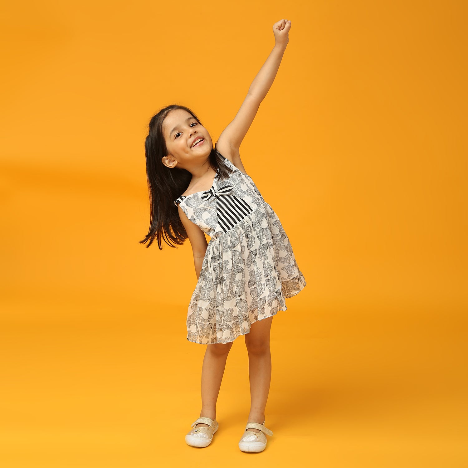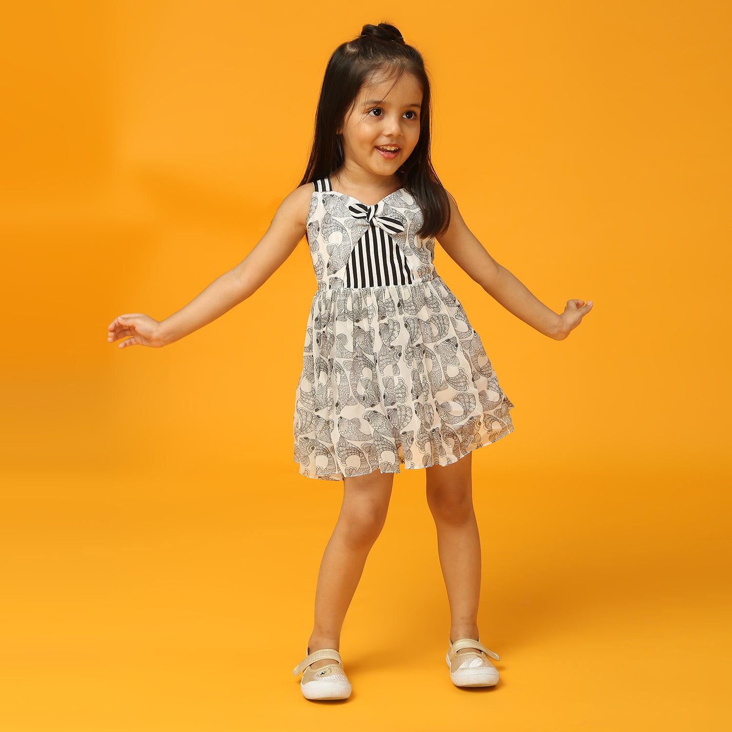 This dress for girls features a fish print and a front knot, along with a criss cross back tie for added detail.