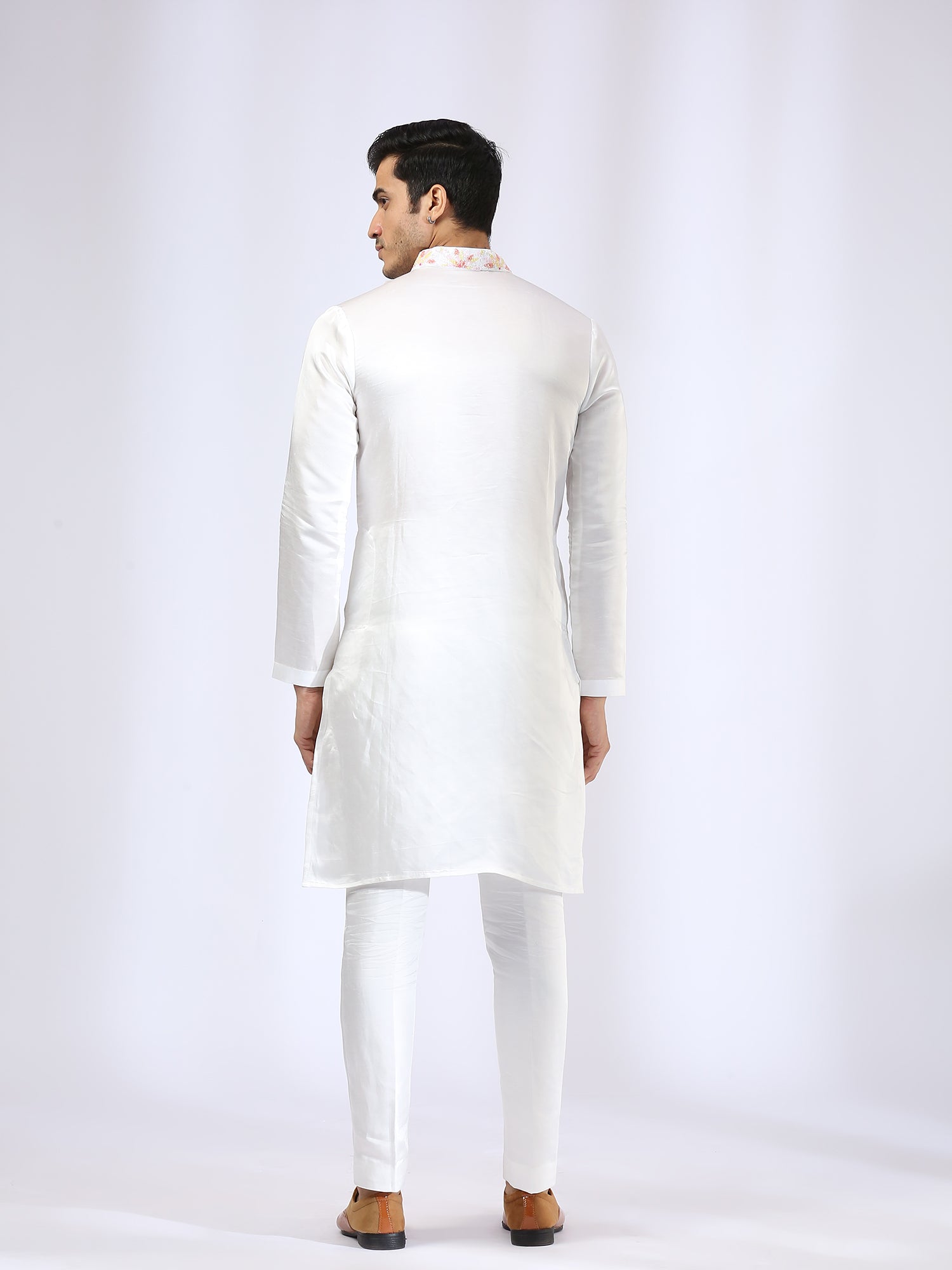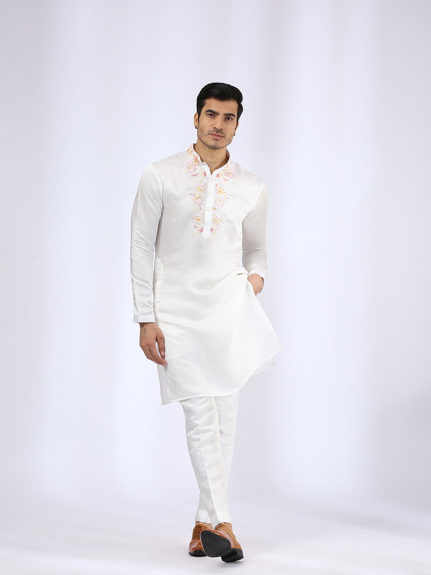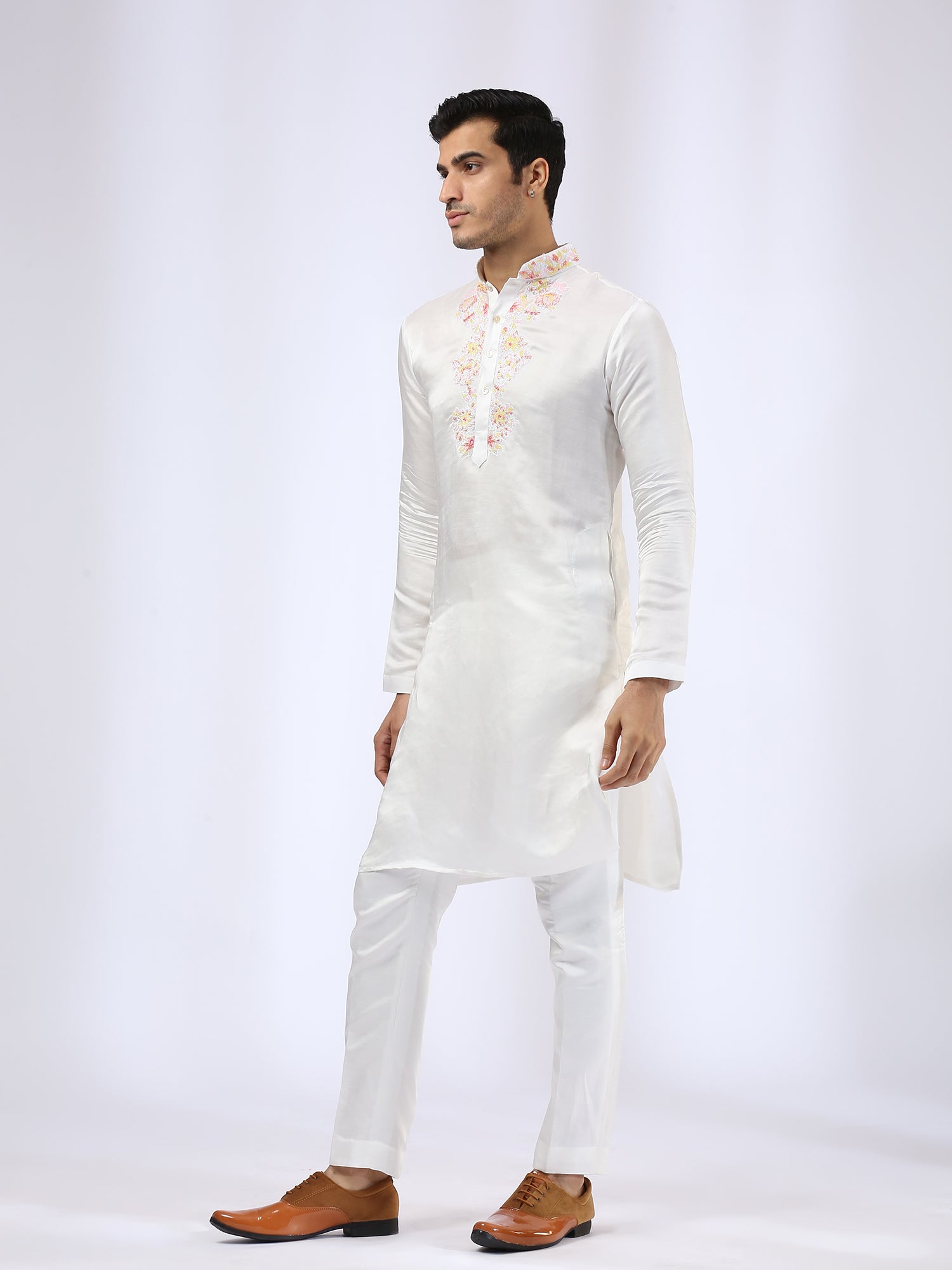 Embroidered Ivory Kurta teamed with matching Narrow Pants