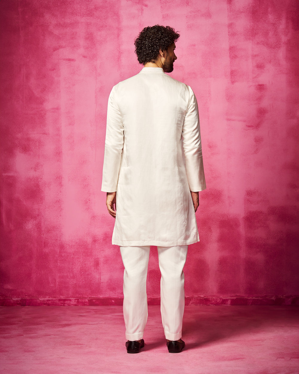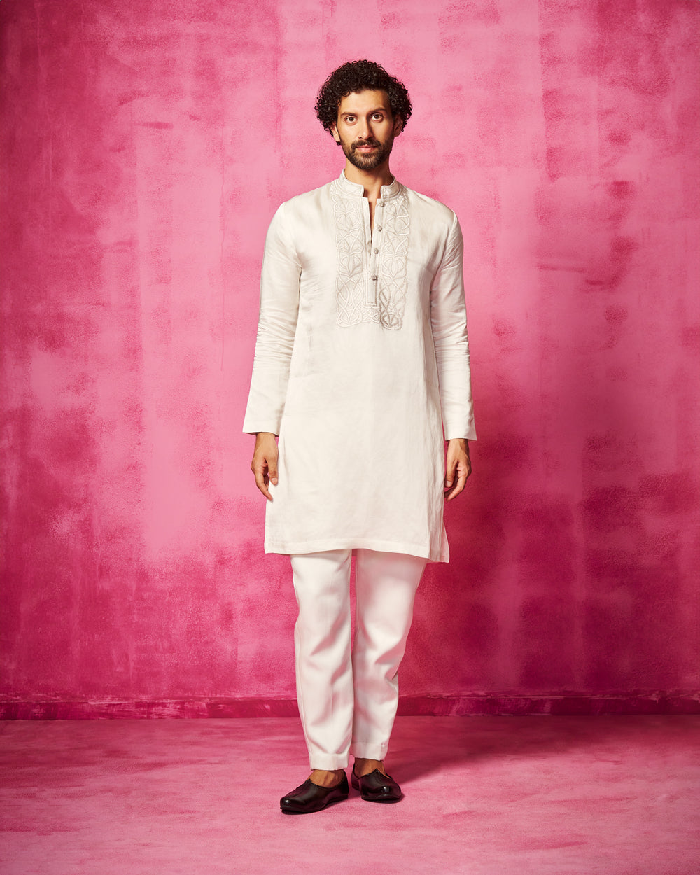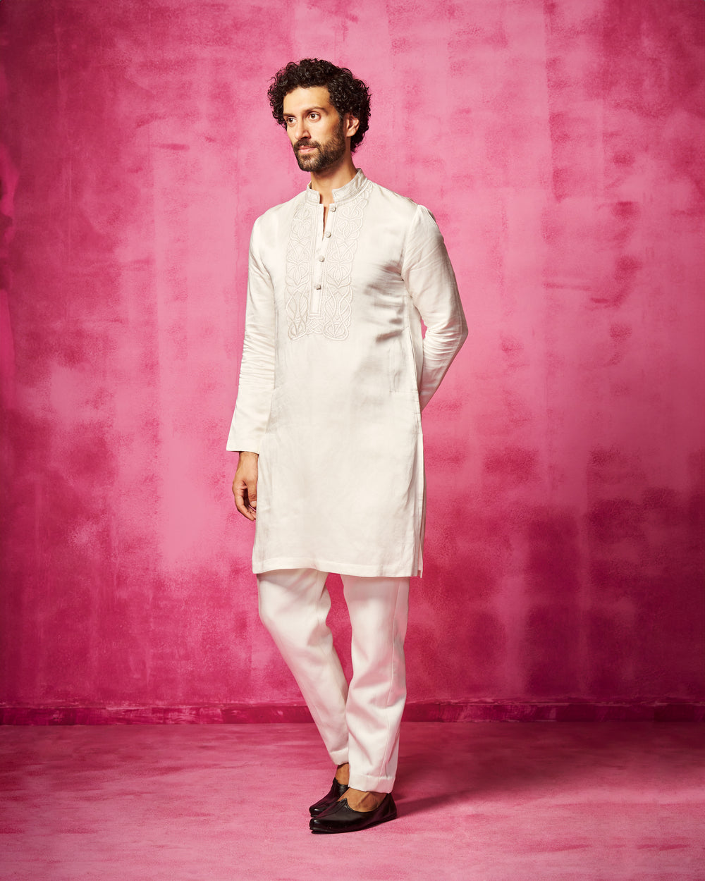 Embroidered Ivory Kurta teamed with matching narrow pants
