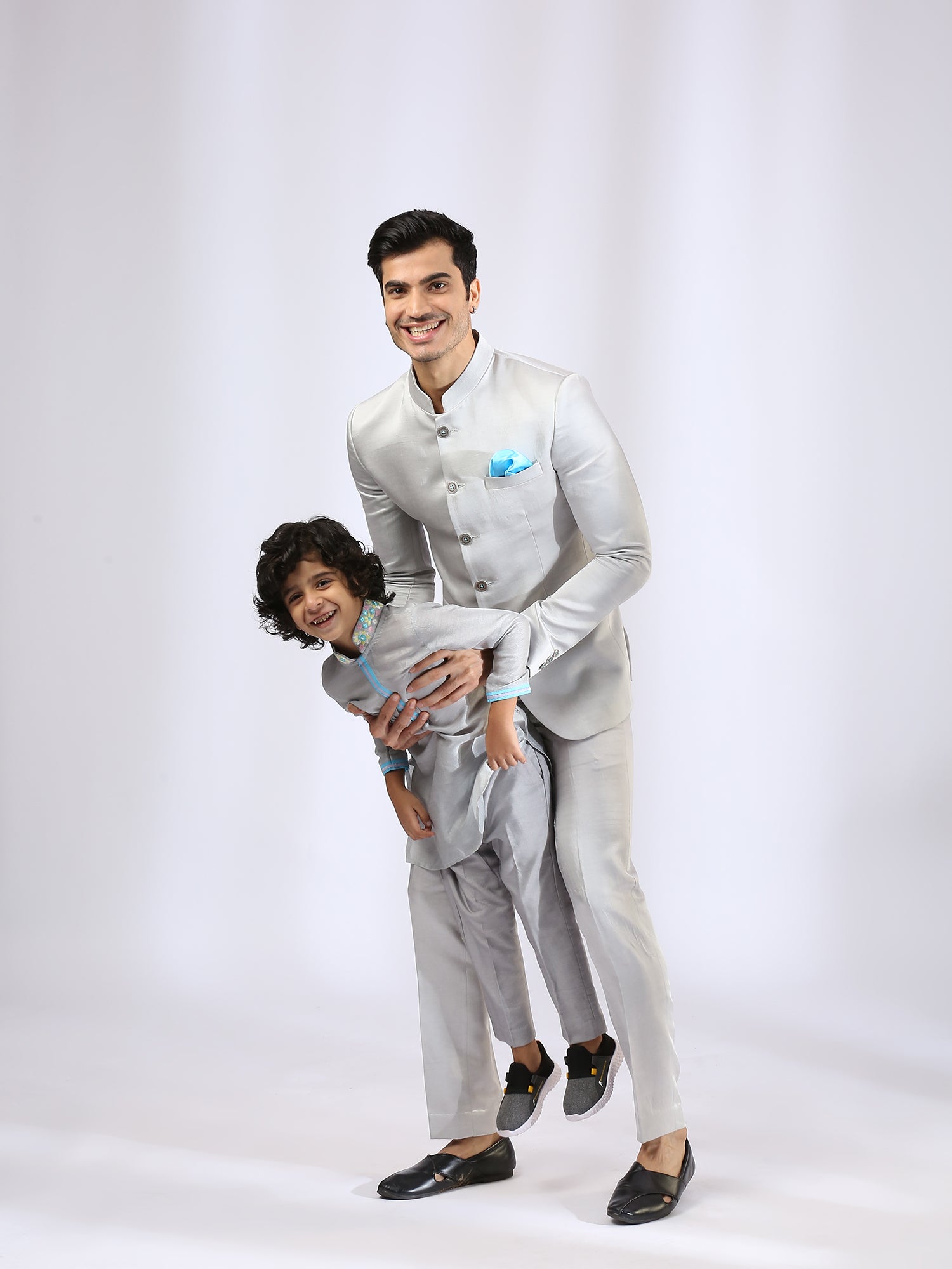 Grey Bandhgala teamed with narrow pants - Father-Son Set