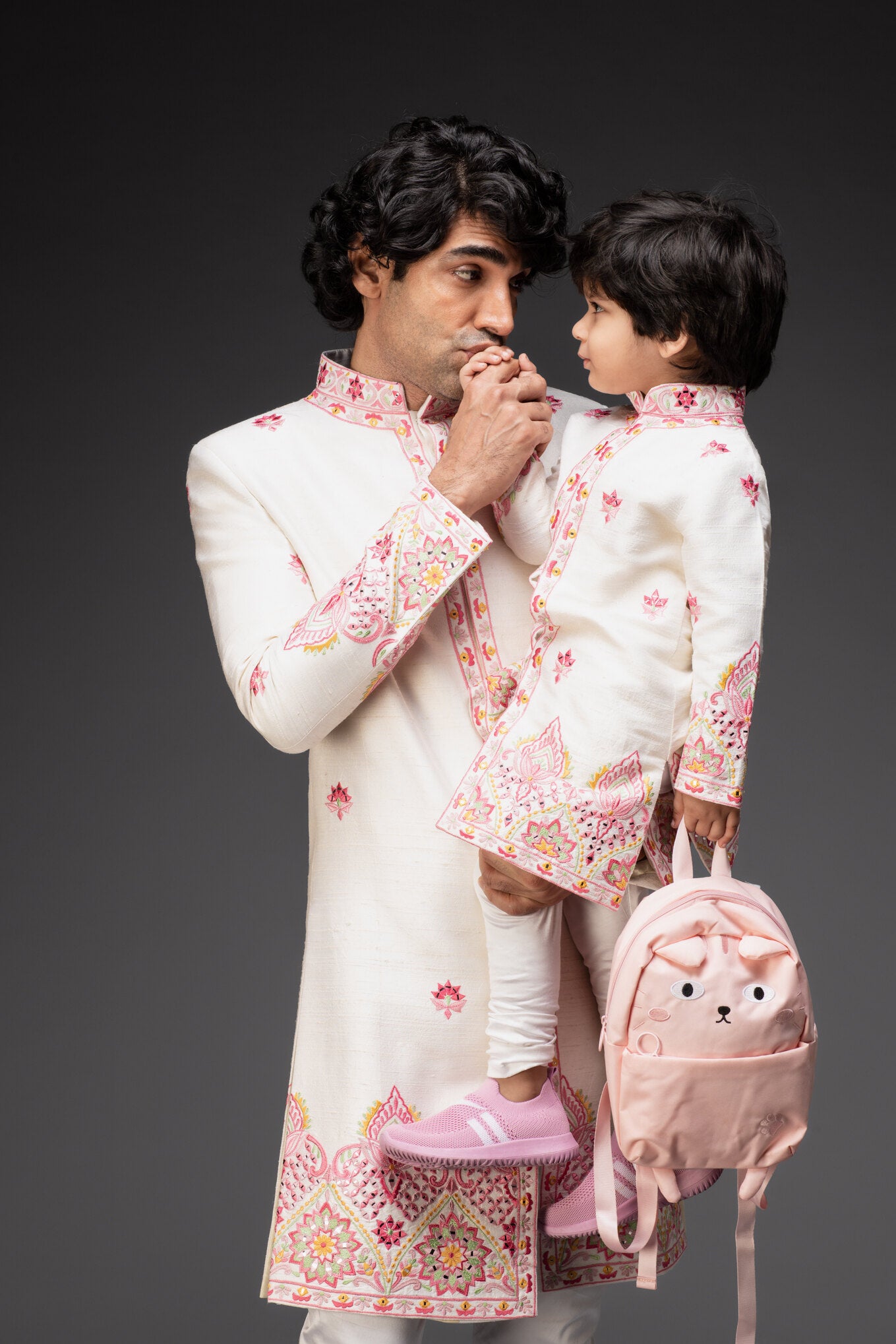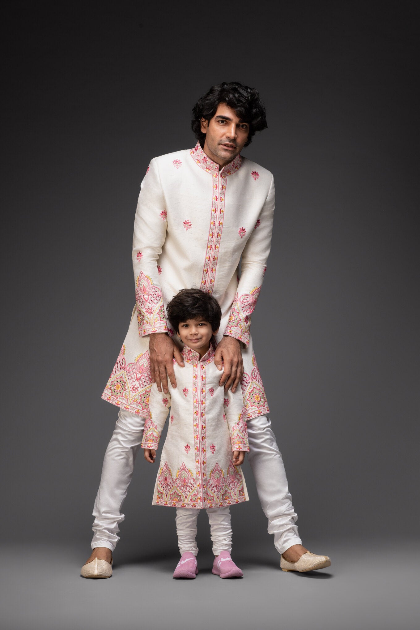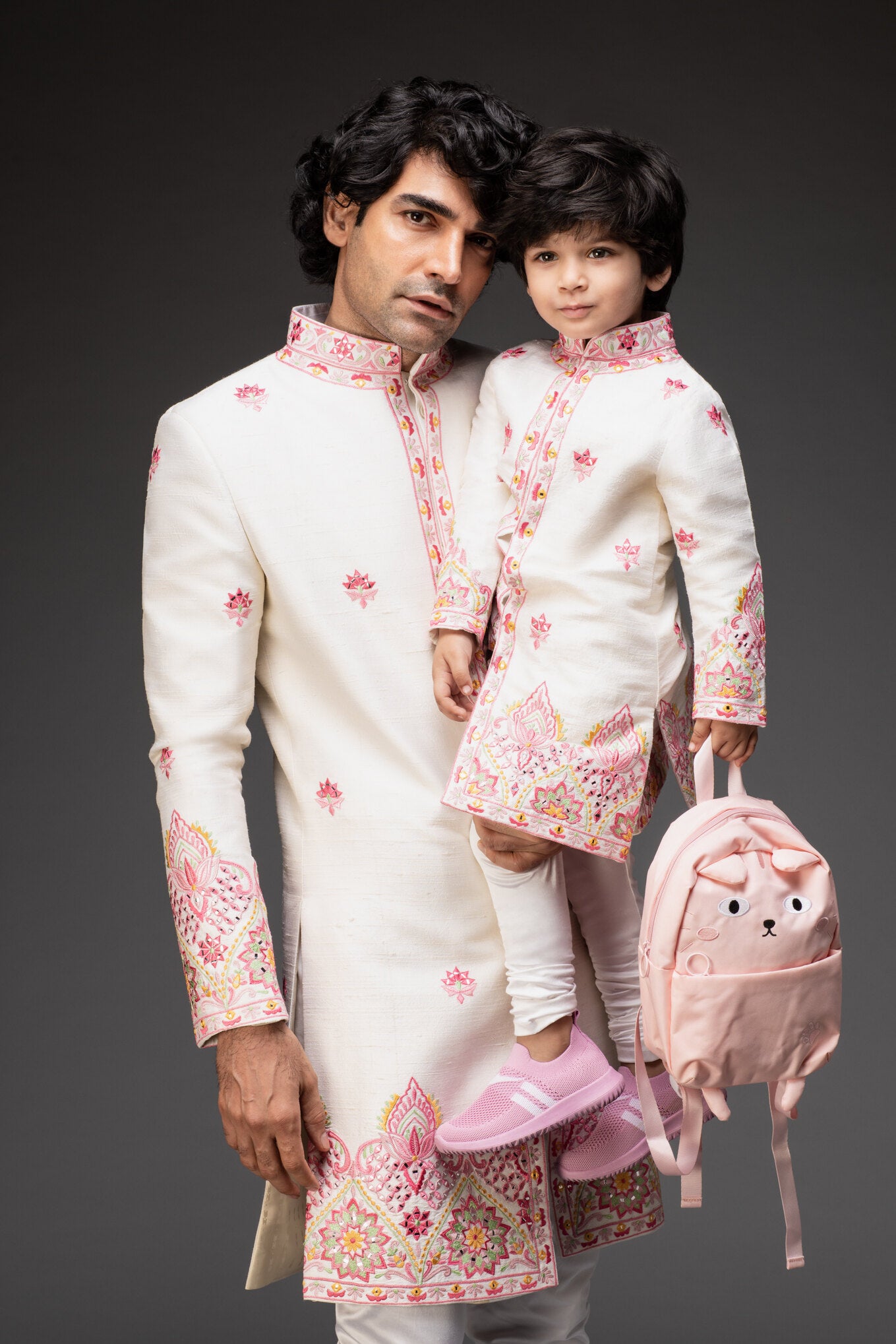 Ivory Embroidered Sherwani With Chudidar - Father & Son