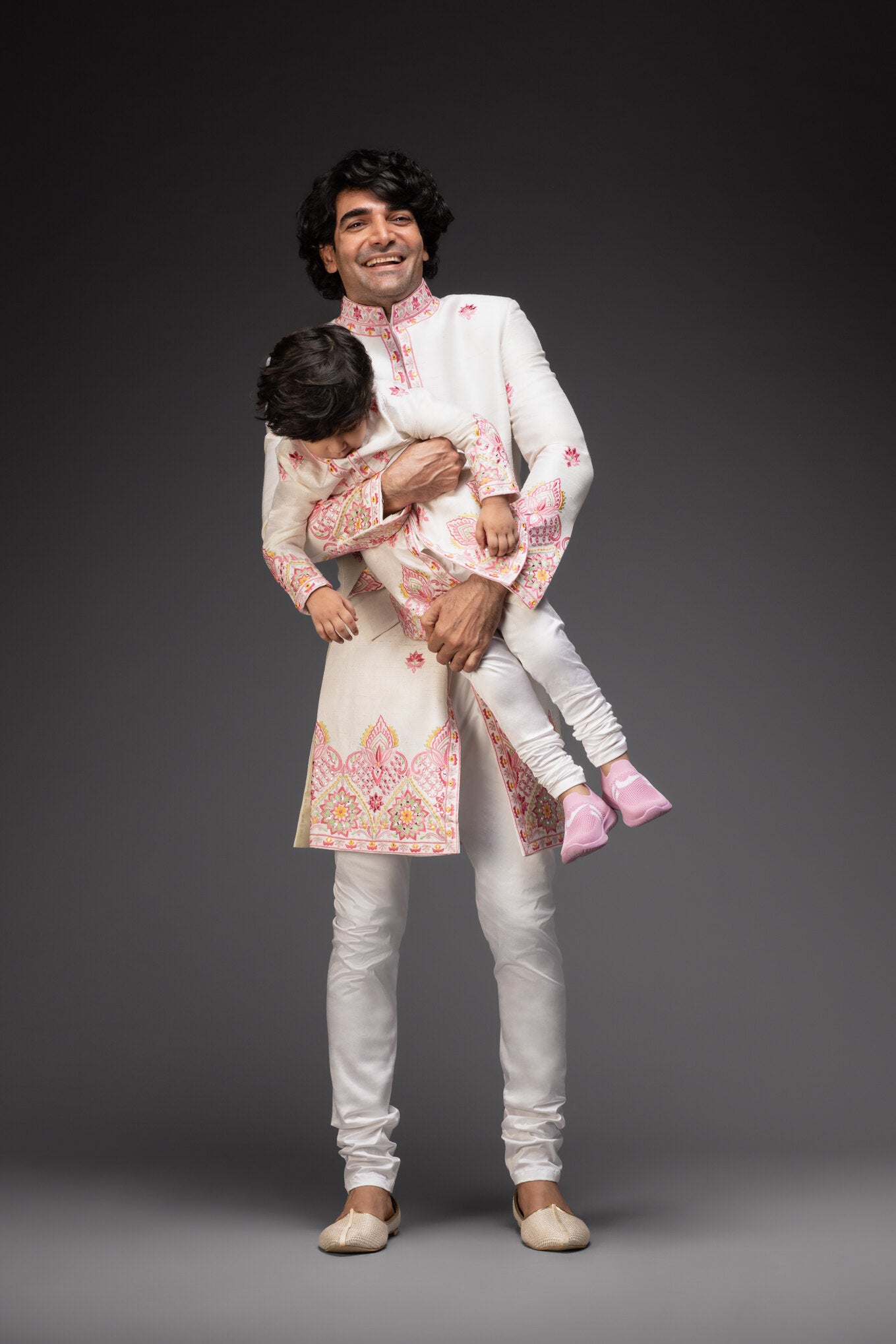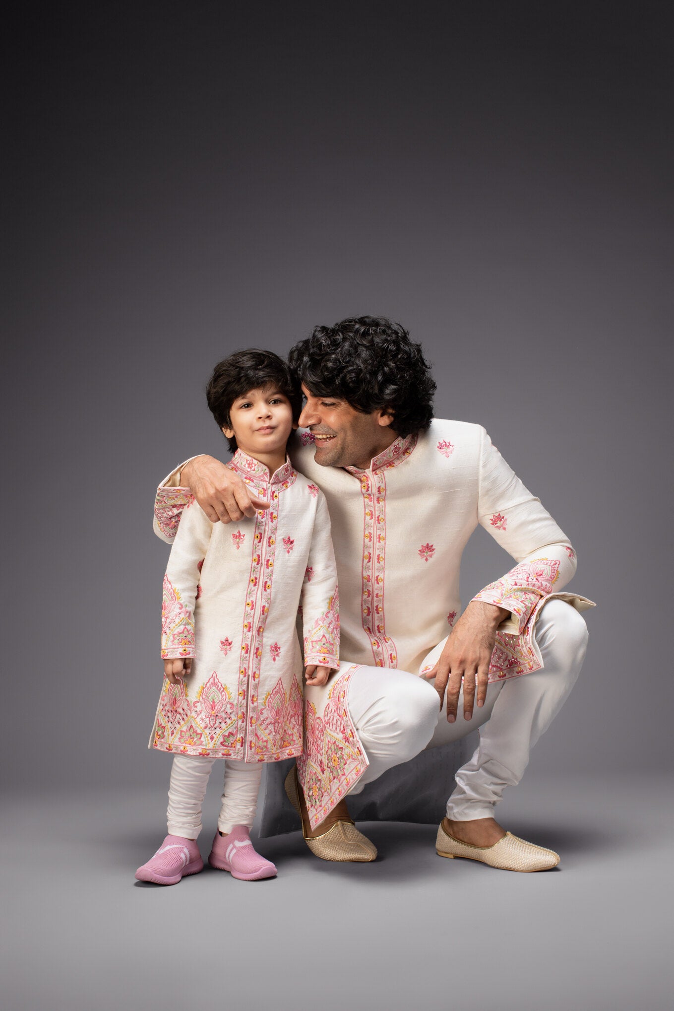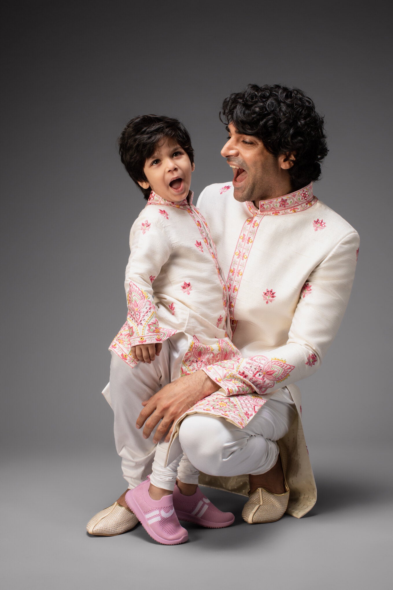 Ivory Embroidered Sherwani With Chudidar - Father & Son