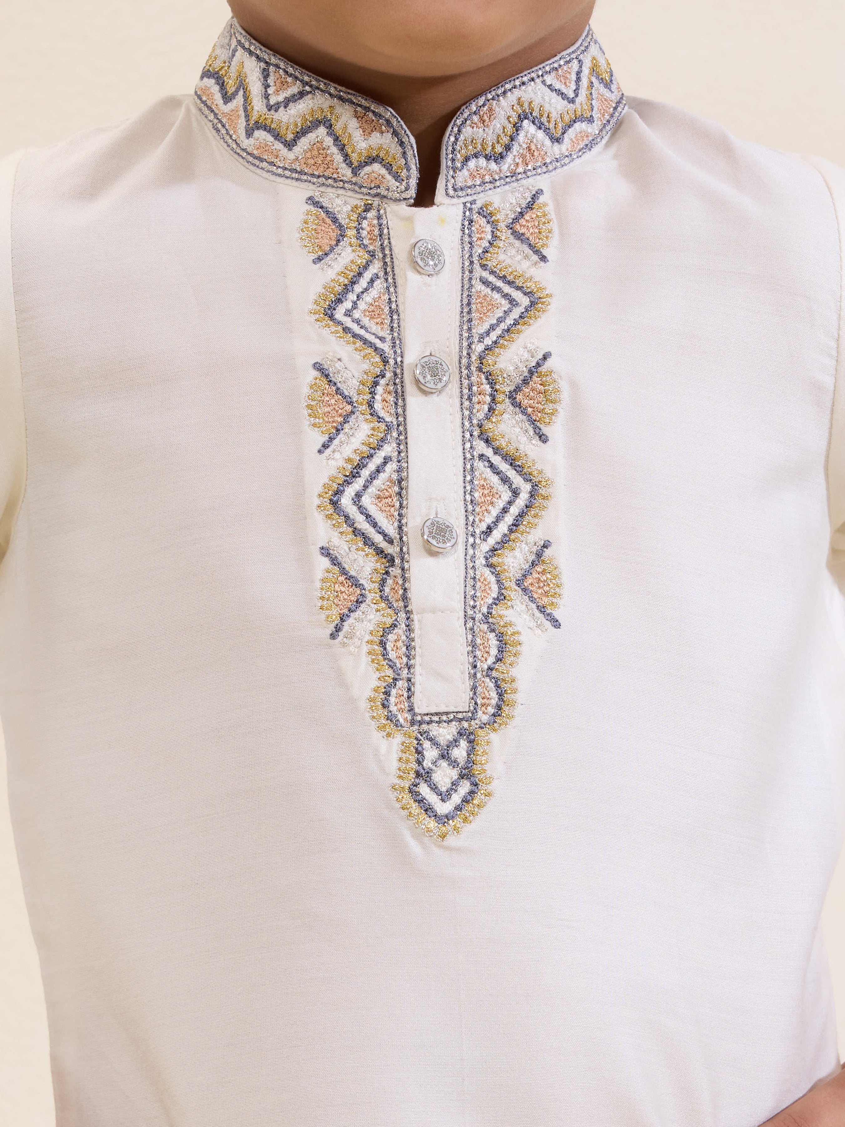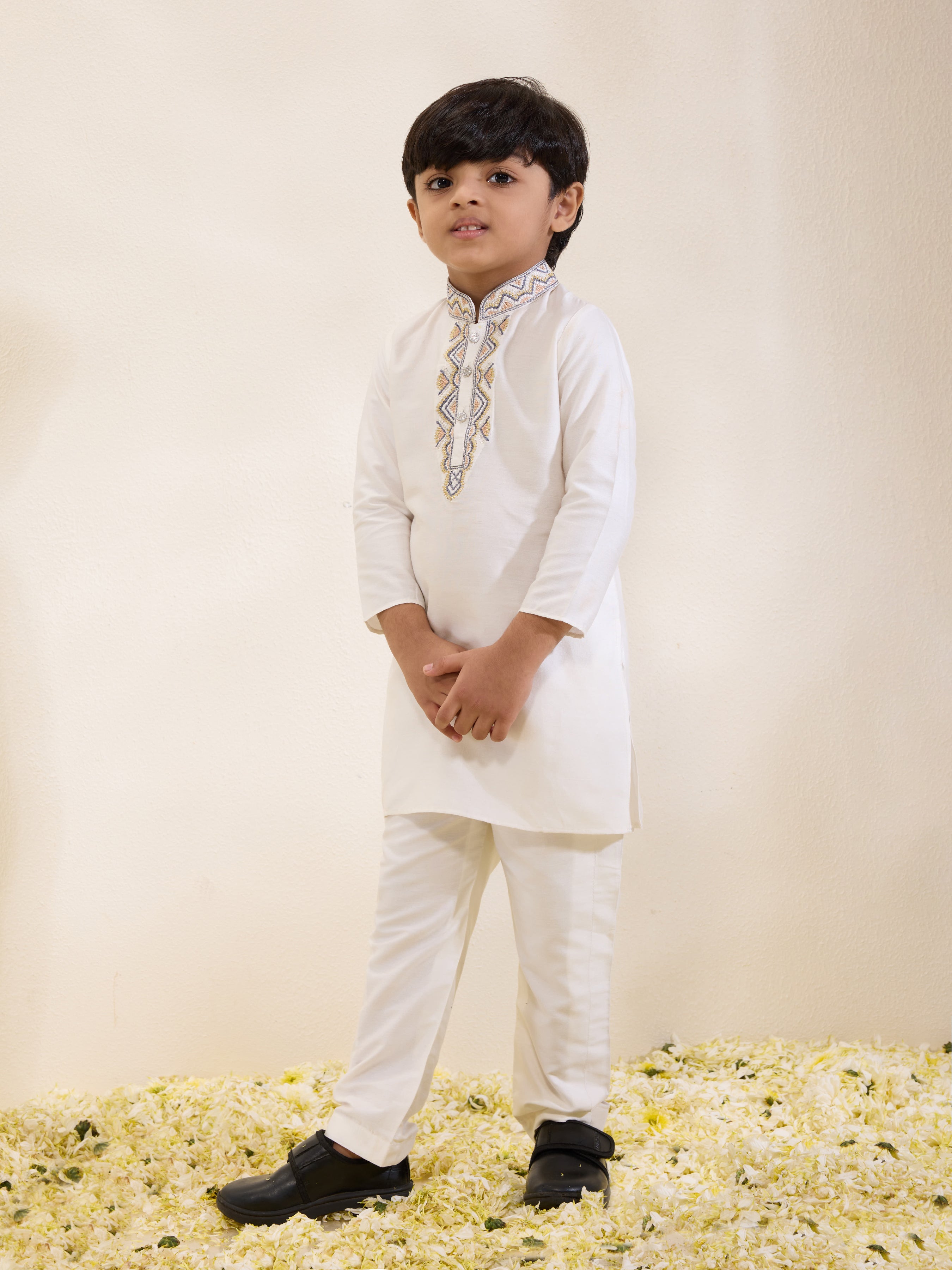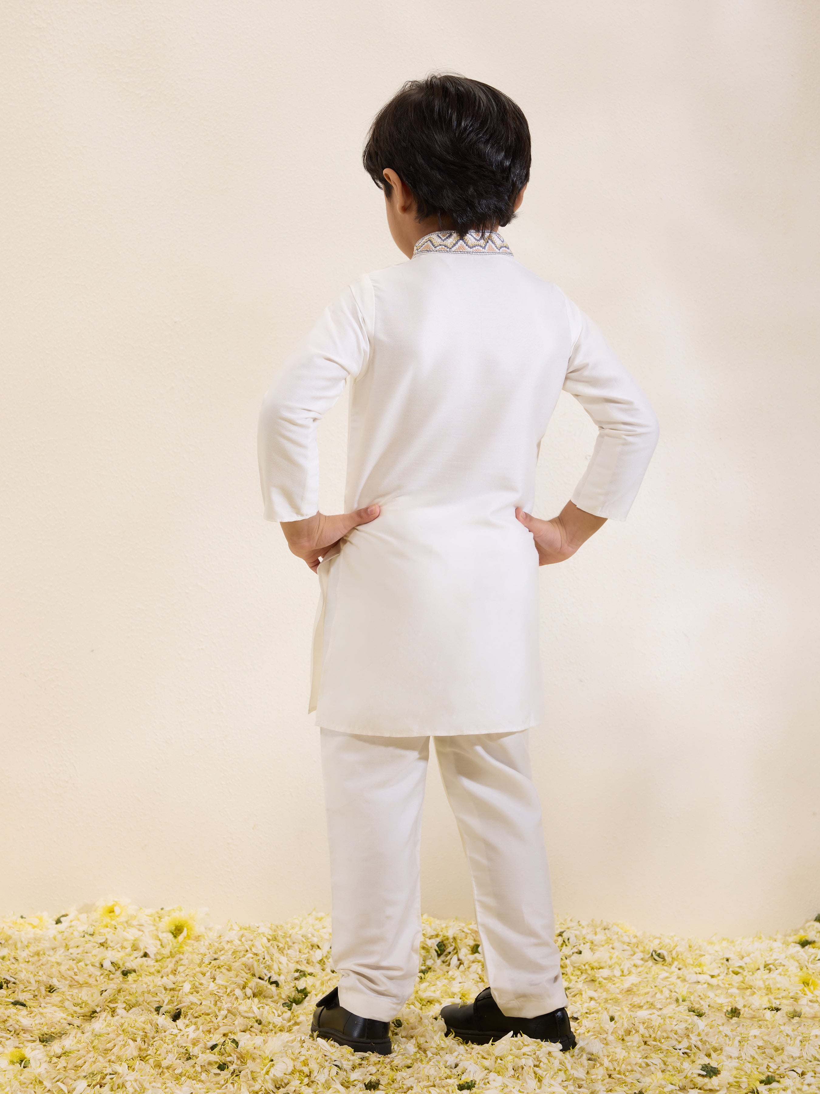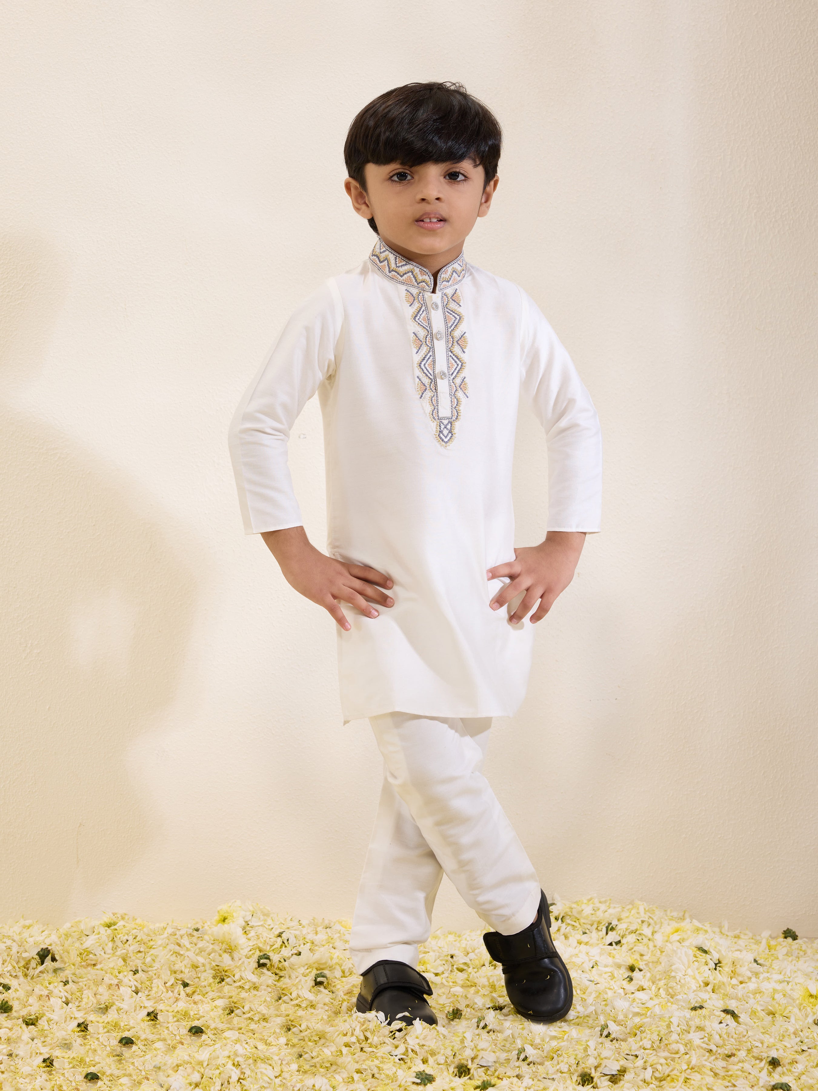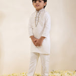 Ivory Kurta Set with Embroidered Collar and Placket and Pants