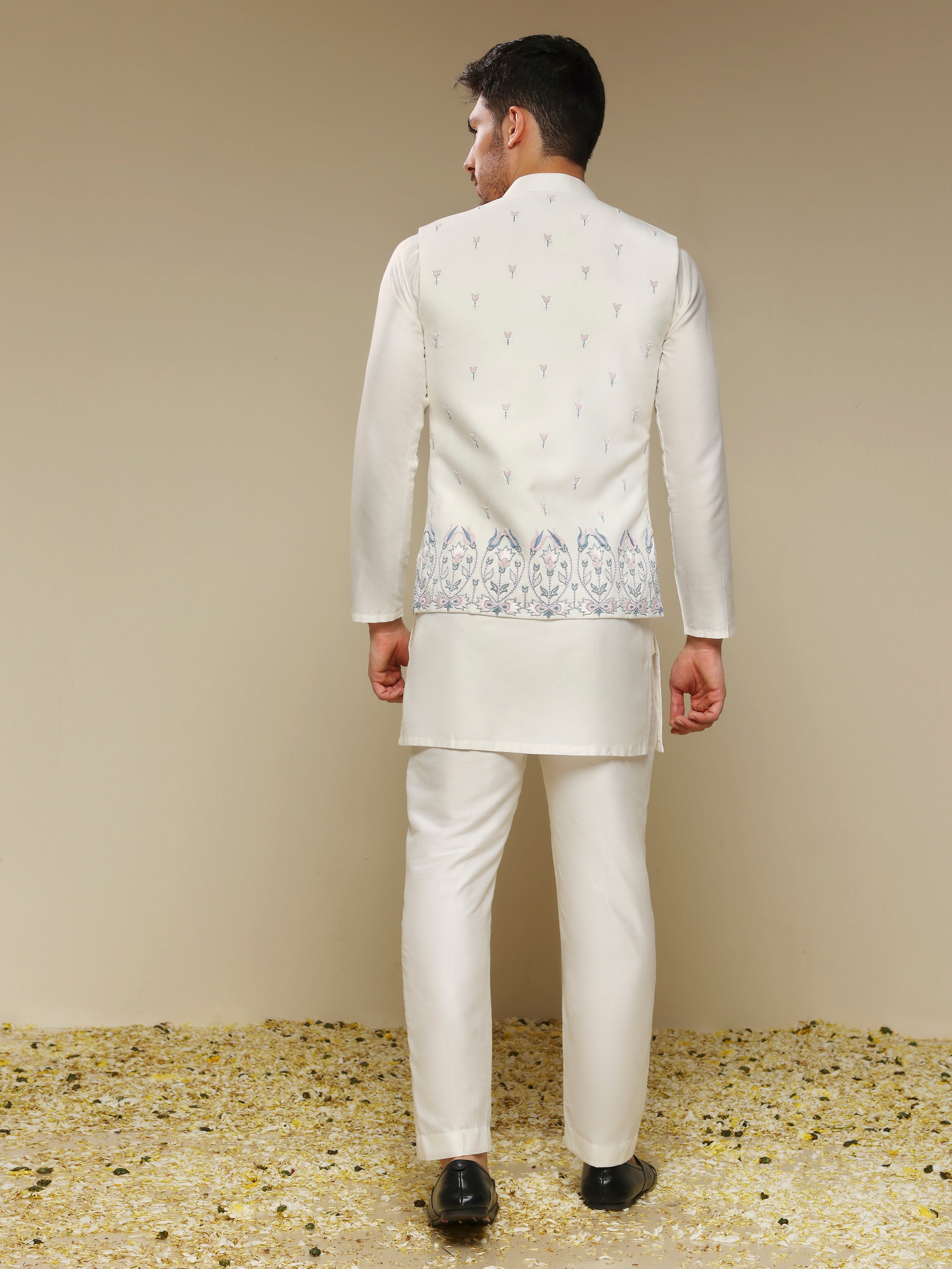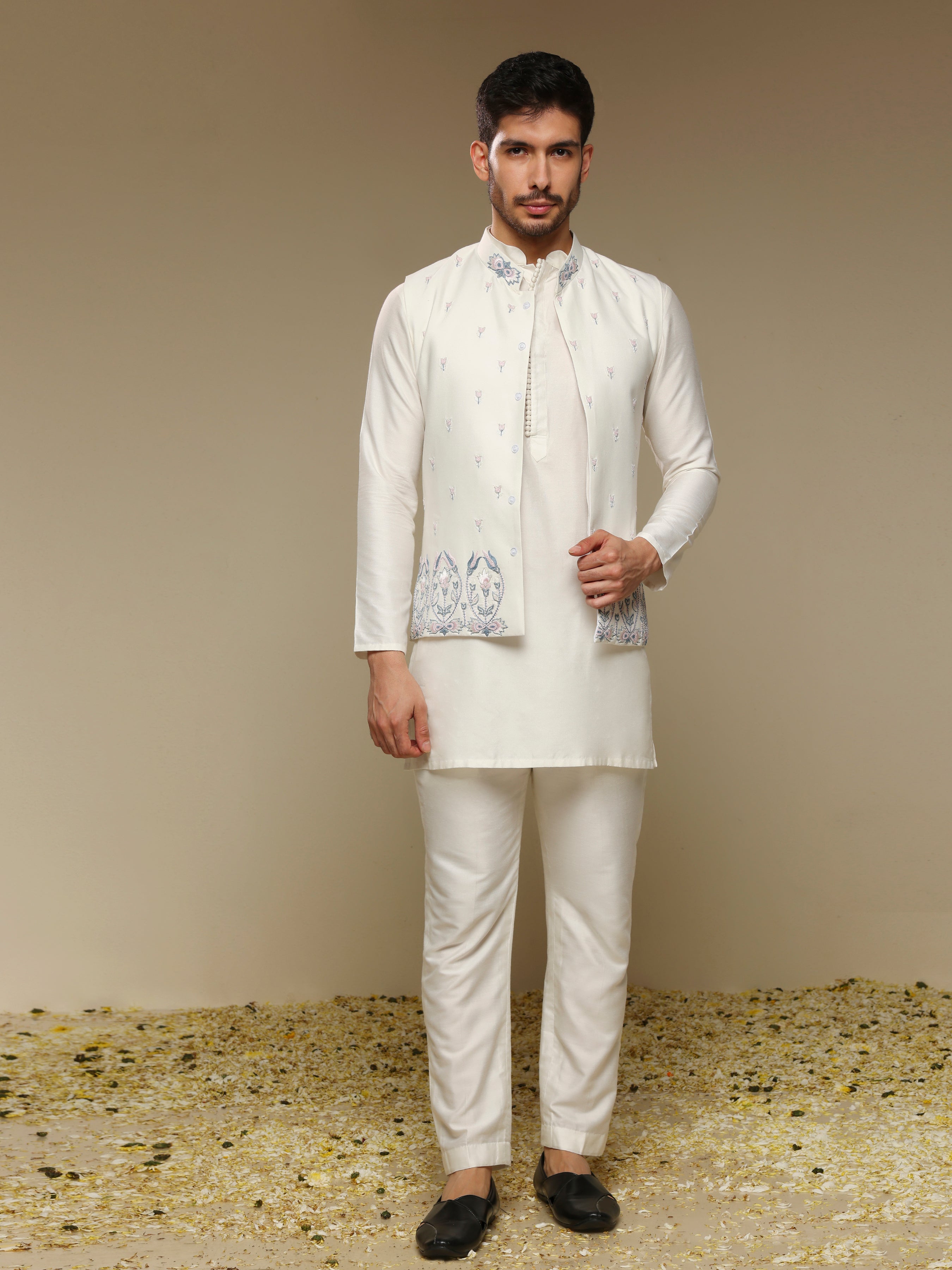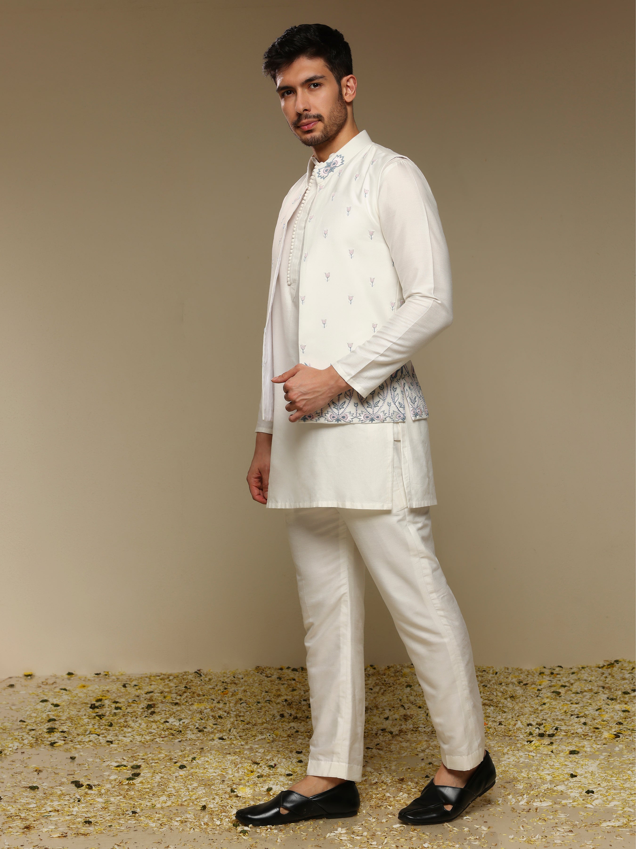 Ivory Kurta Set with Hand-Embroidered Bandhgala Jacket