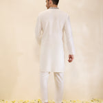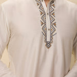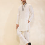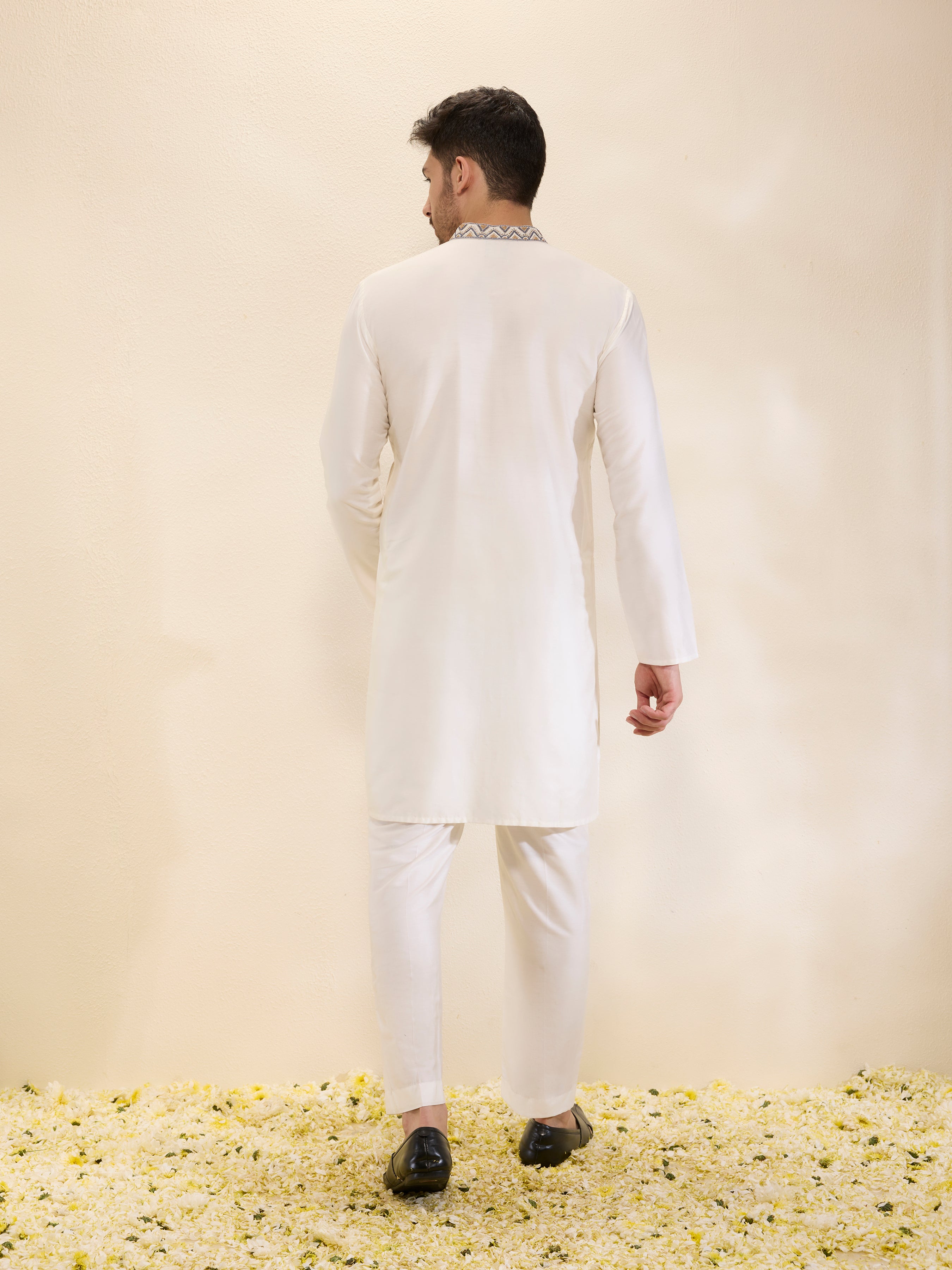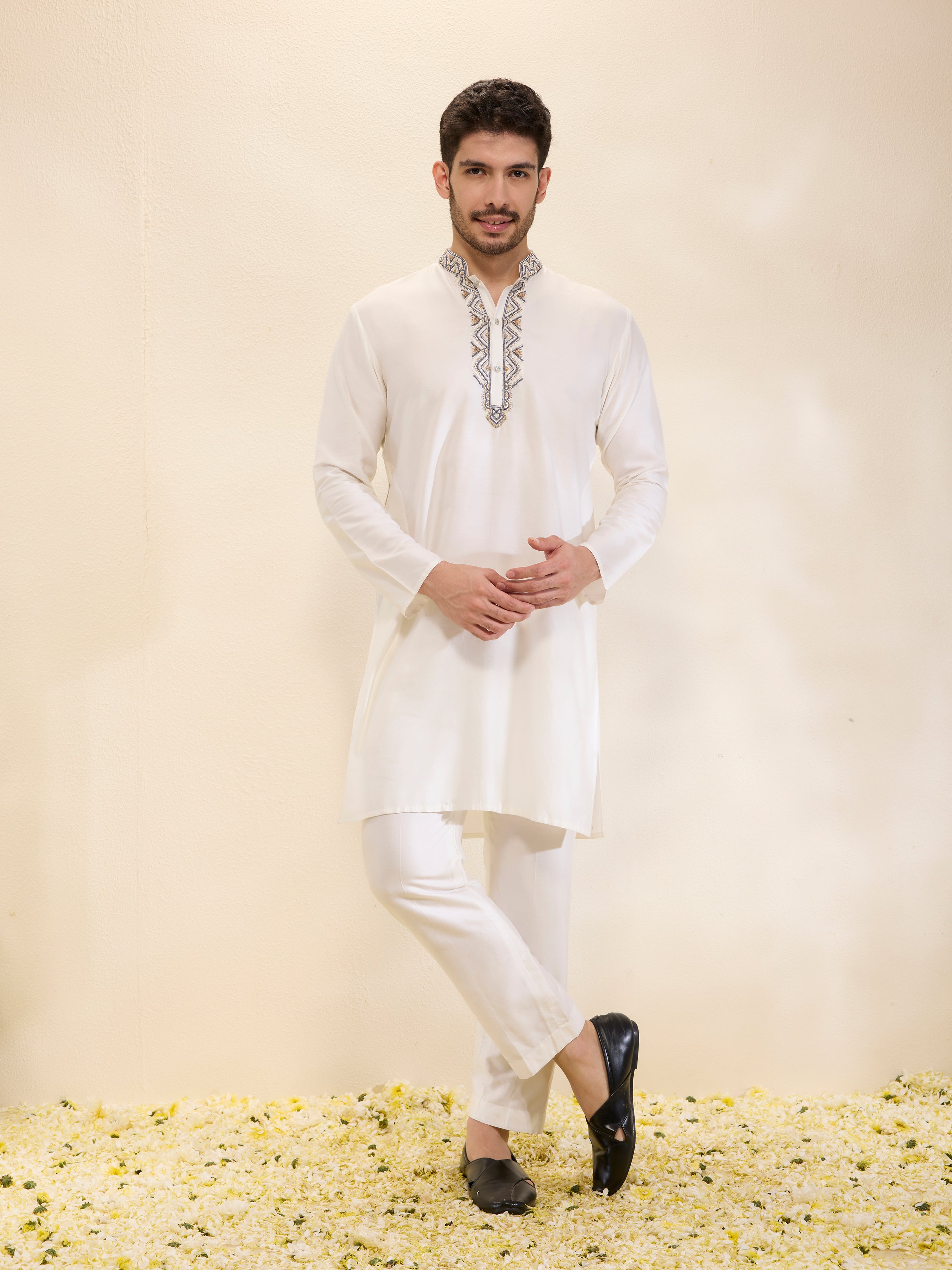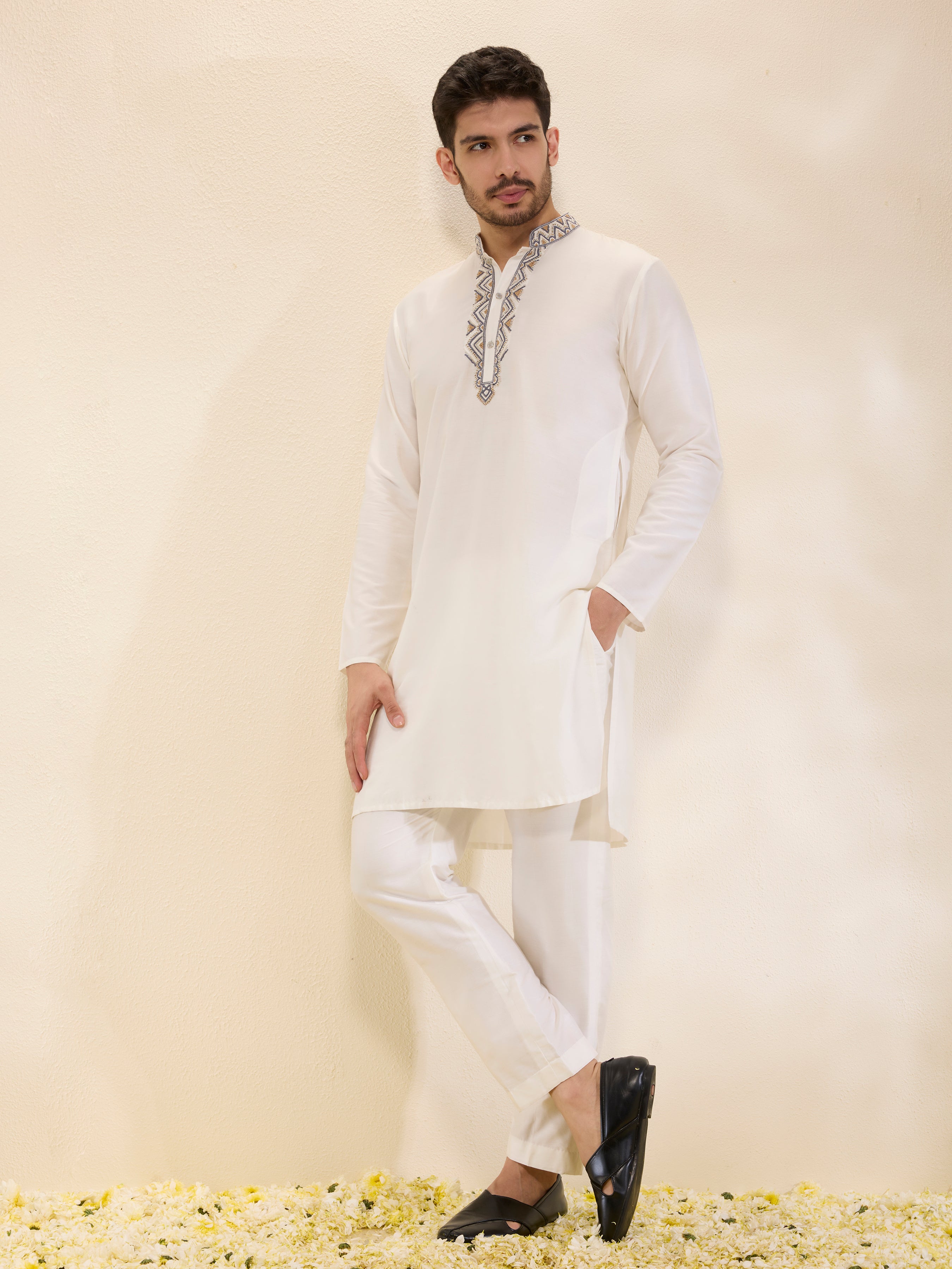 Ivory Kurta Set with Hand-Embroidered Collar and Placket and Pants