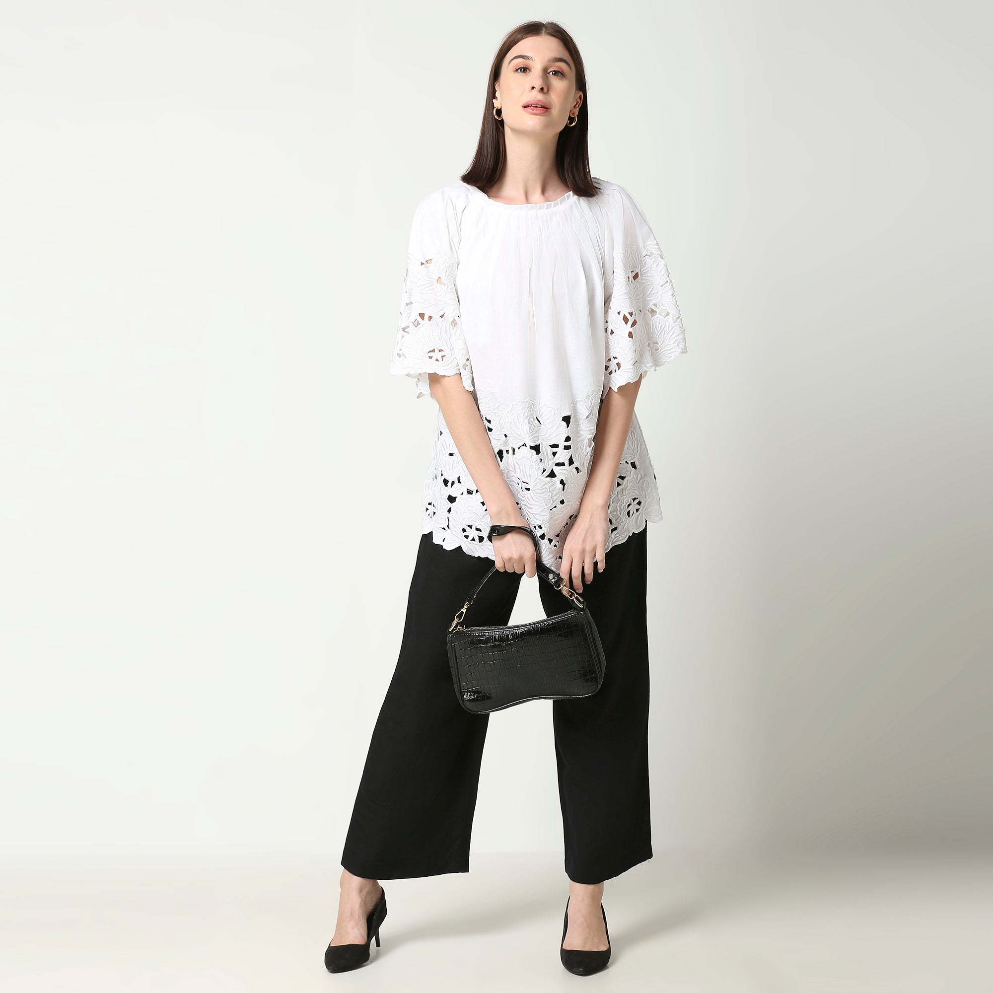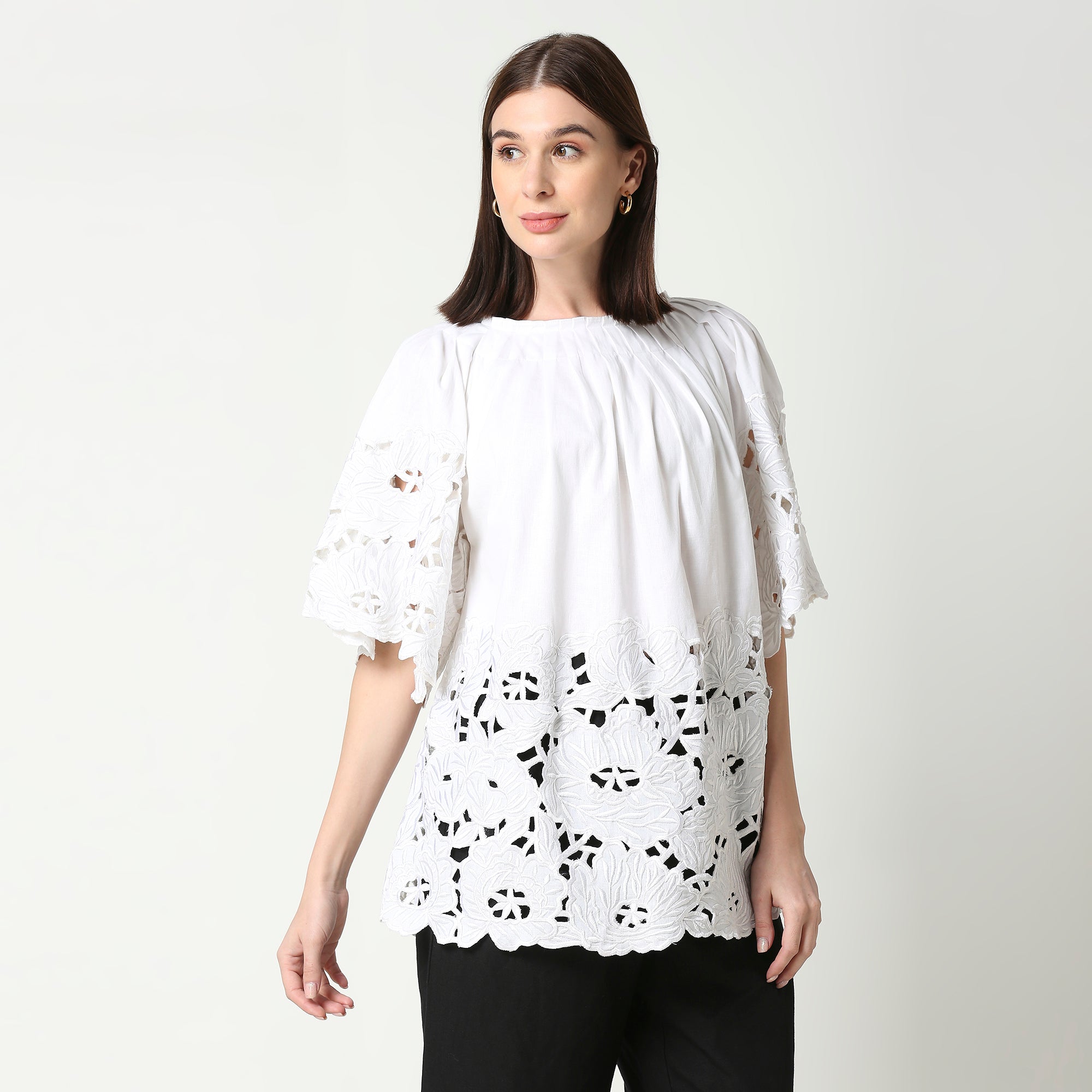 Ivory White Round Floral Cutwork Tunic