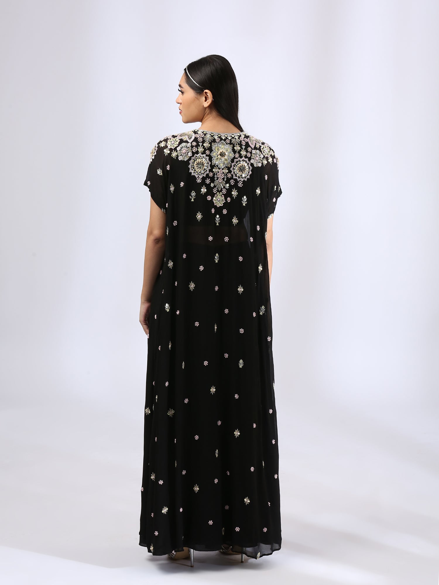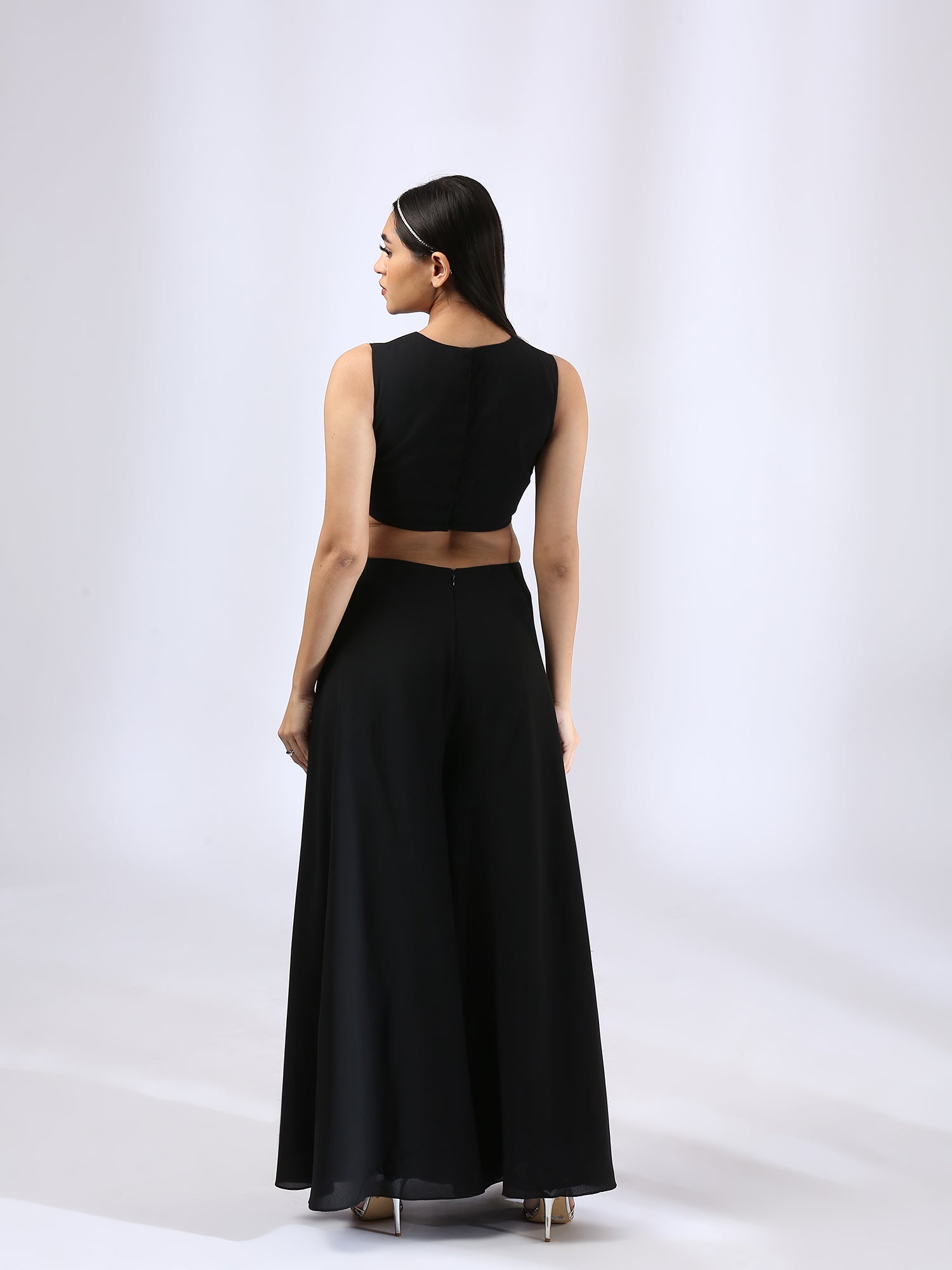 Jet Black Jumpsuit with an Embroidered Open Jacket