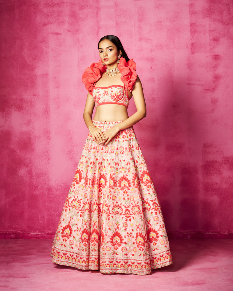Light Pink Embroidered Lehenga Set with Shrug