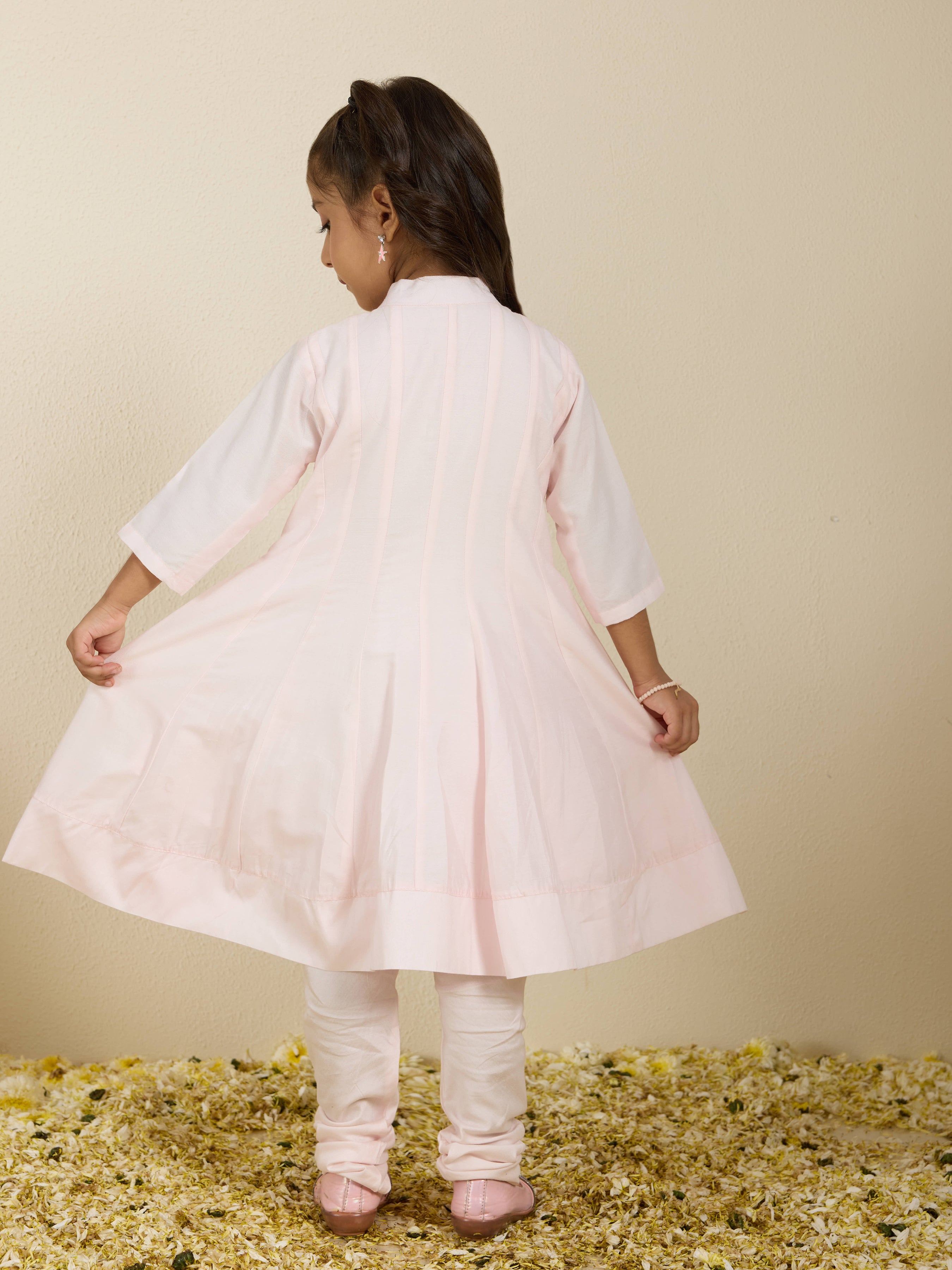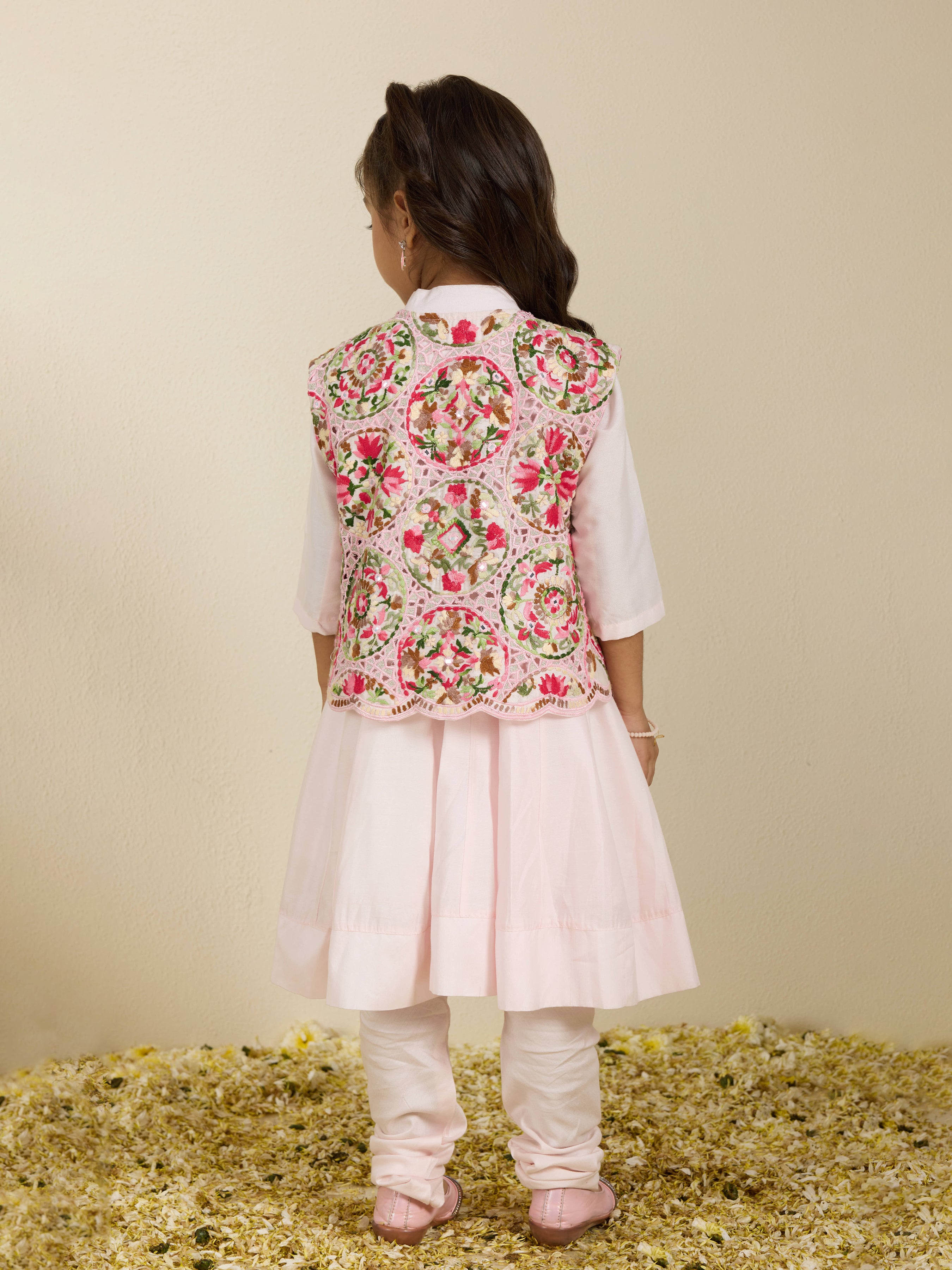 Light Pink Kalidar Spun Silk Kurta Set with Embroidered Cutwork Jacket