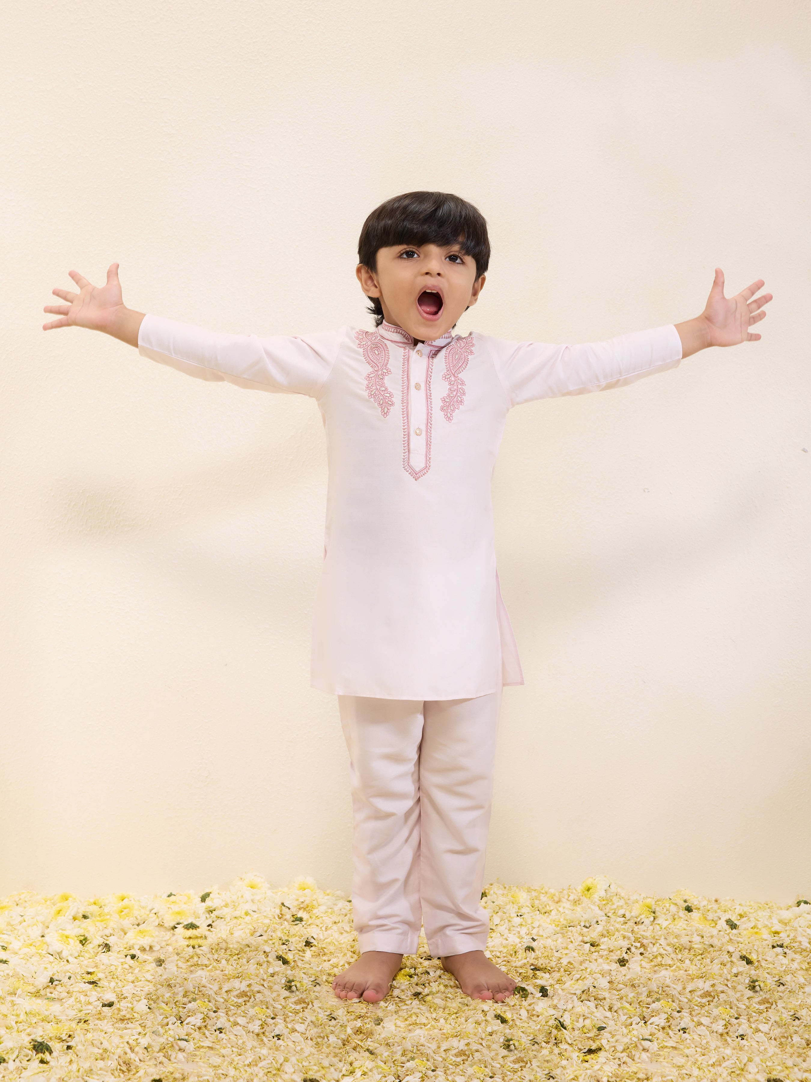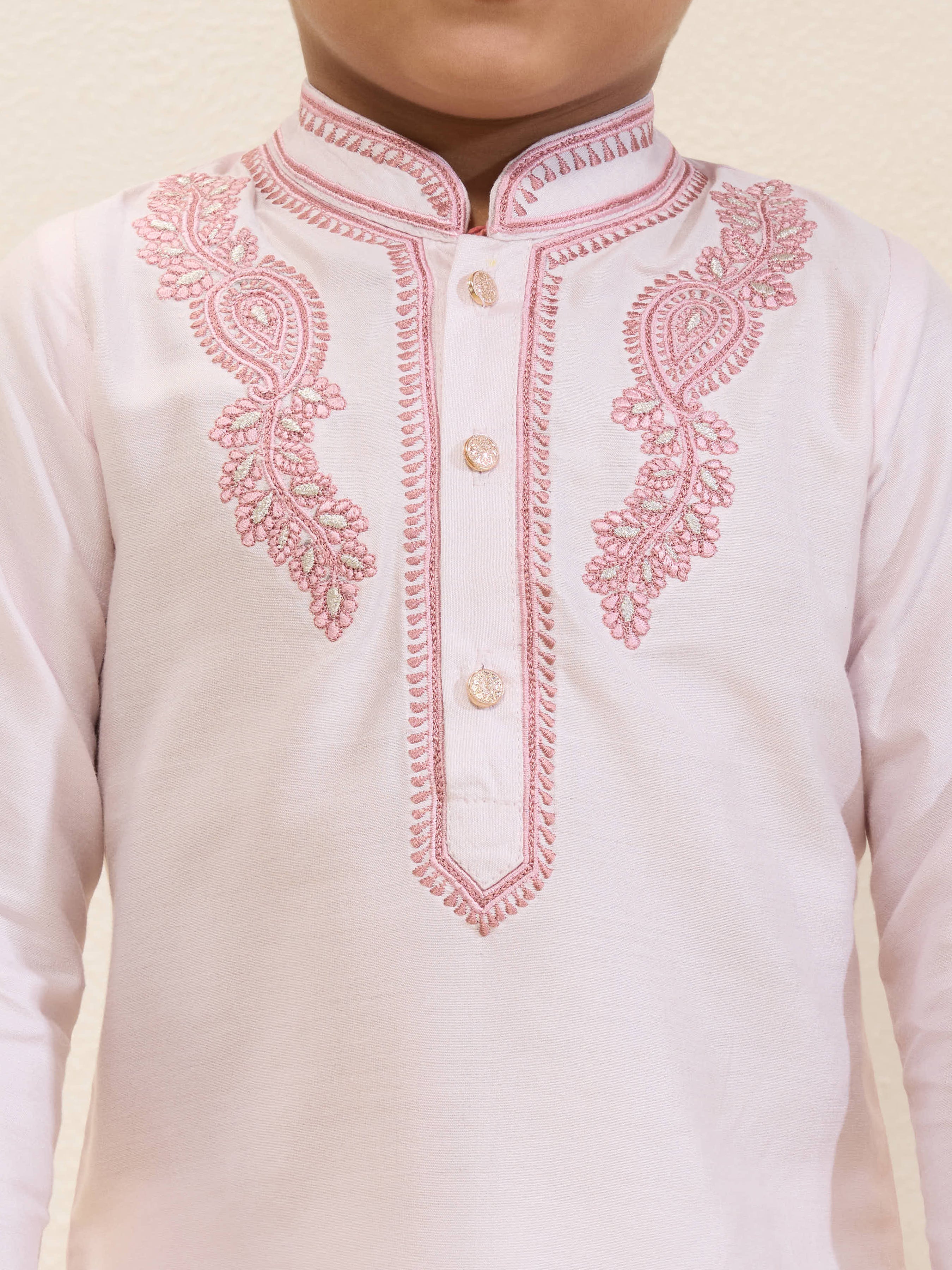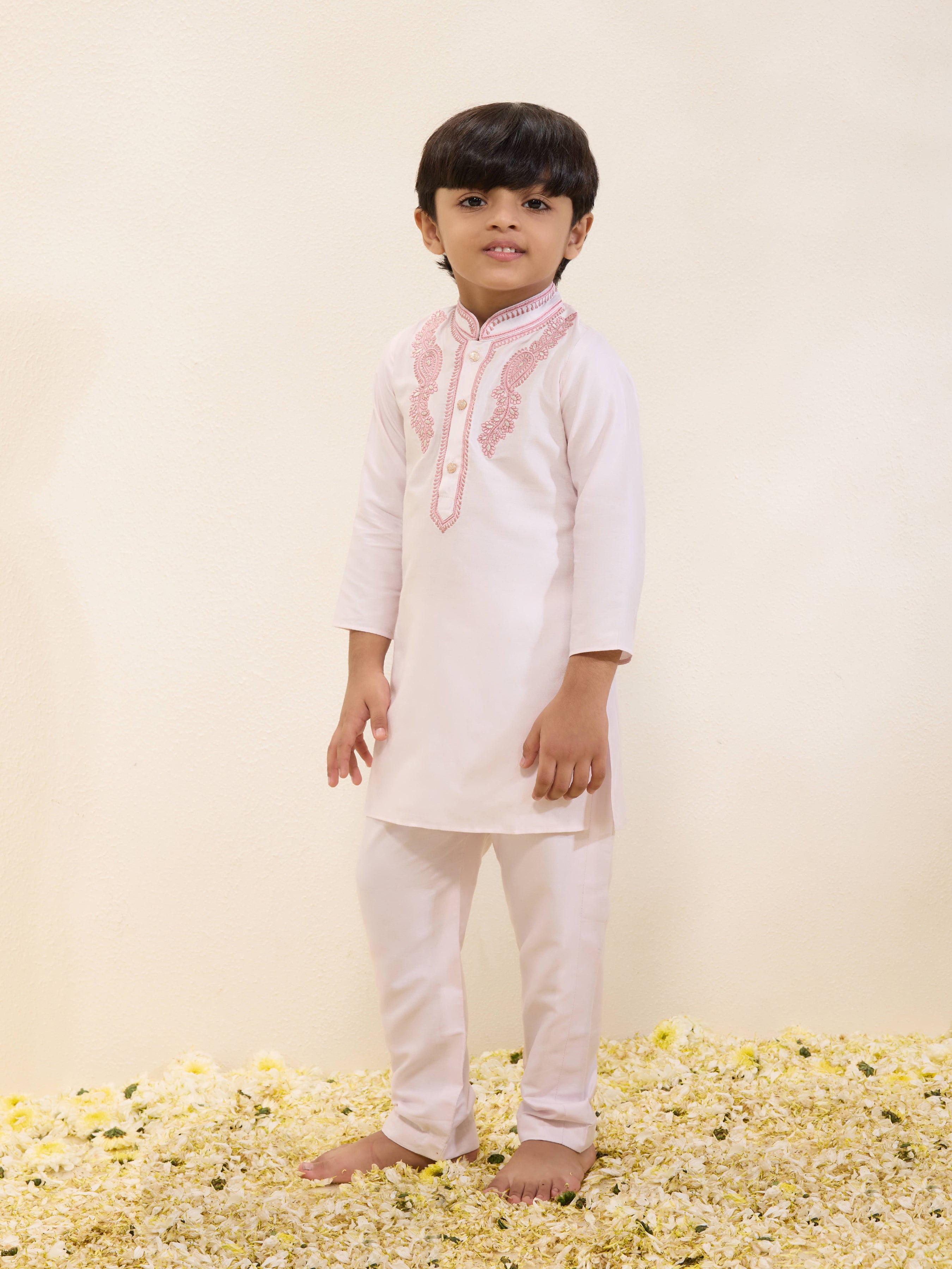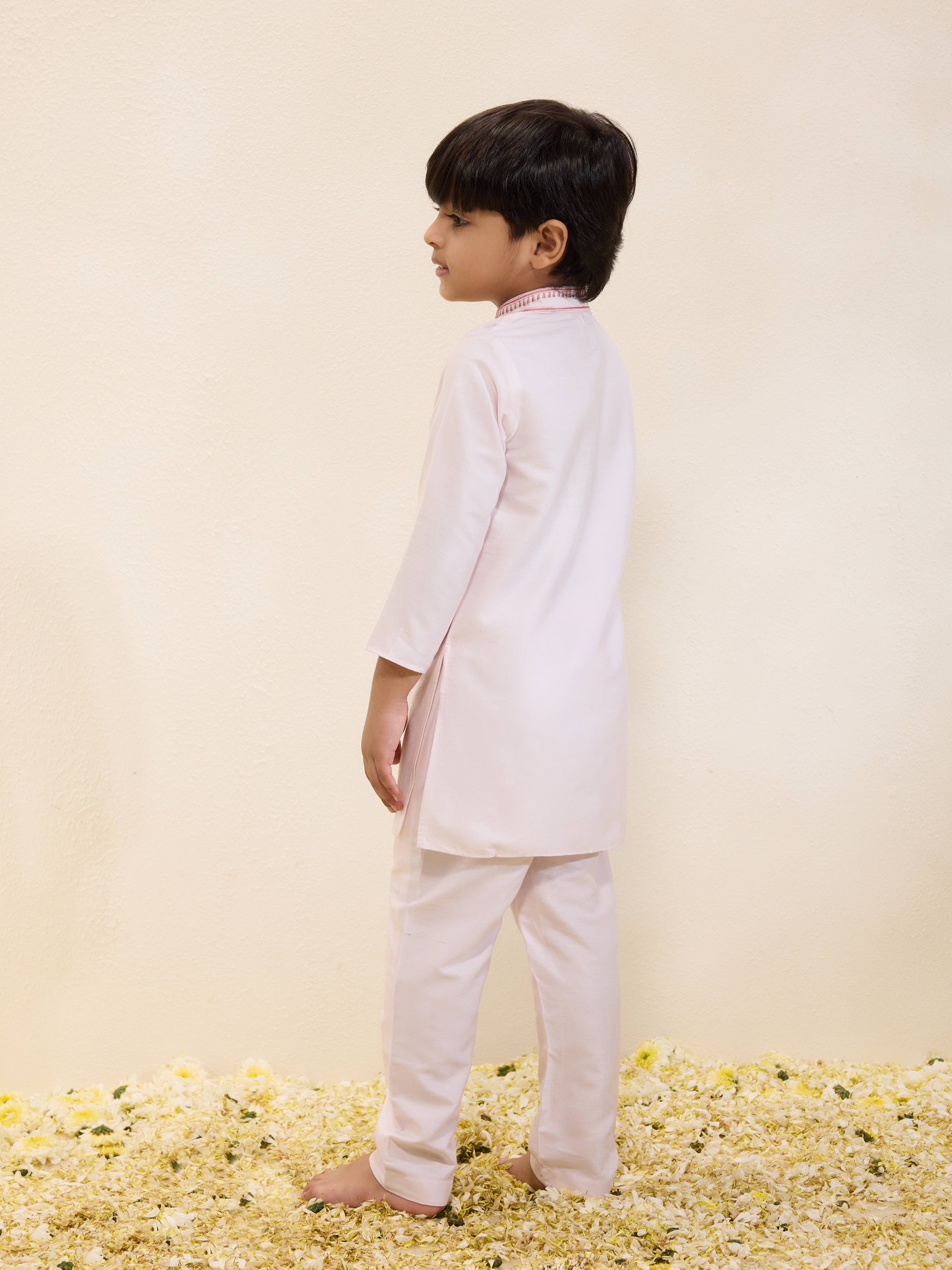 Light Pink Kurta Set with Embroidered Collar and Placket and Pants