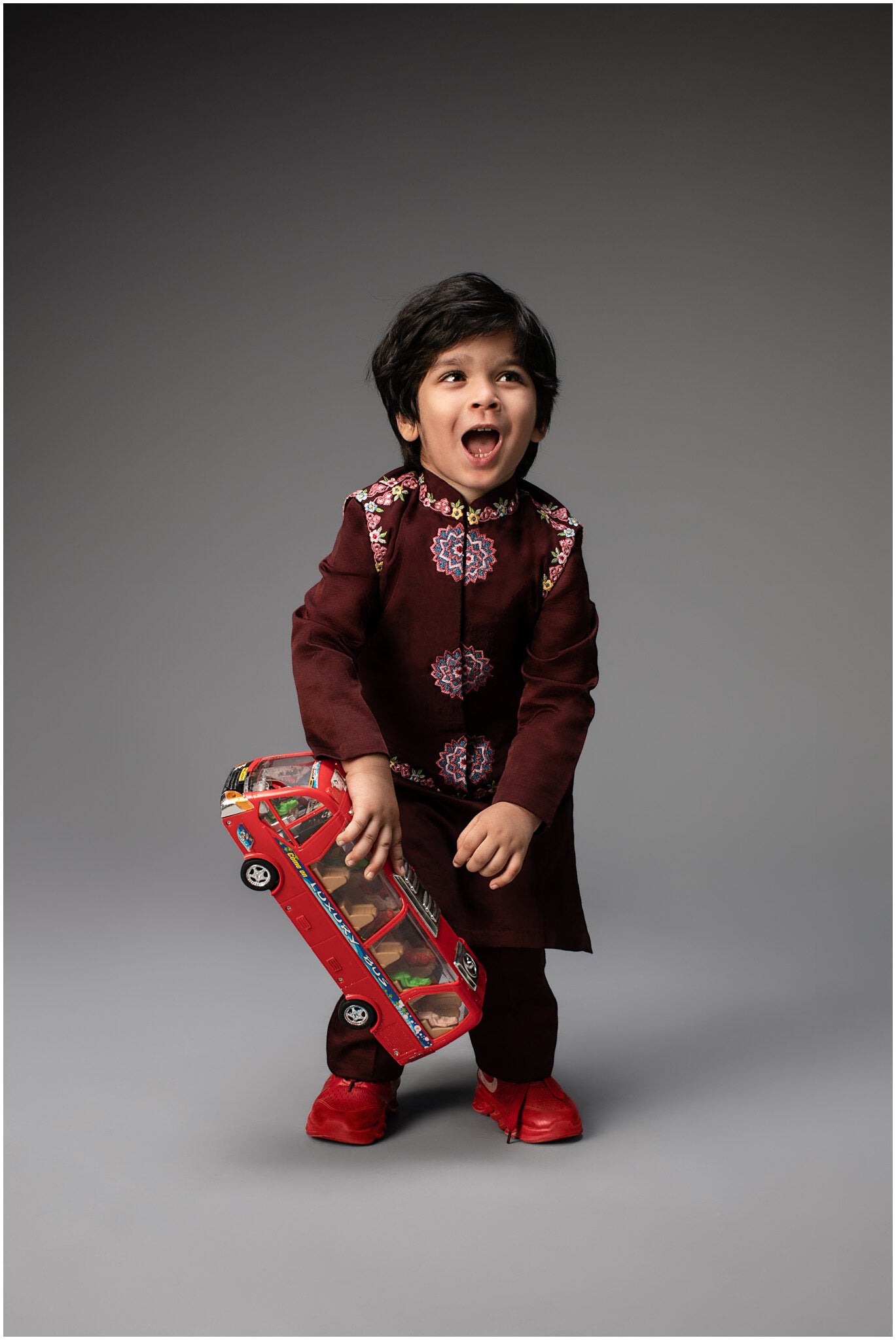 Maroon Organza Embroidered Nehru Jacket and Kurta Set