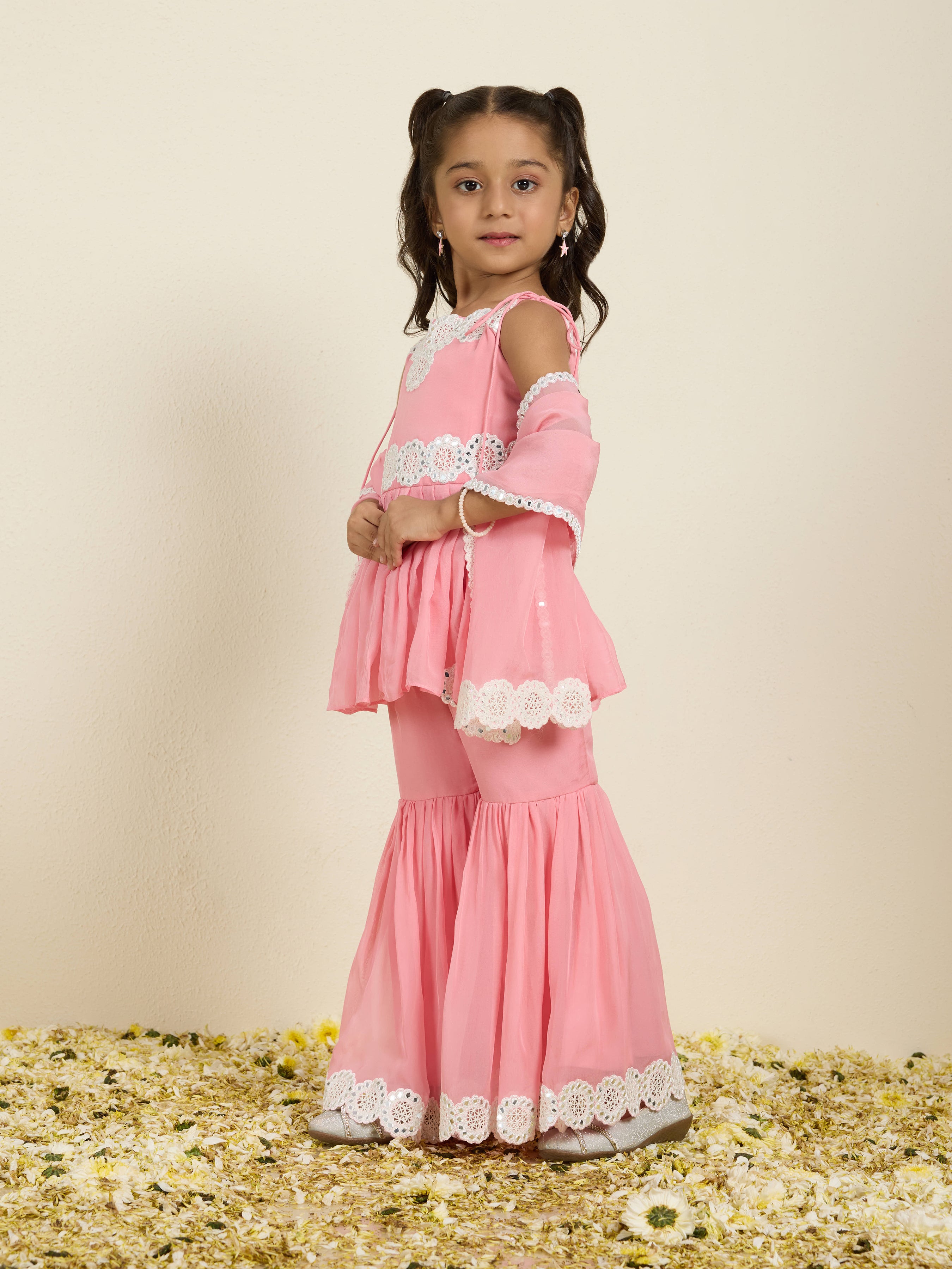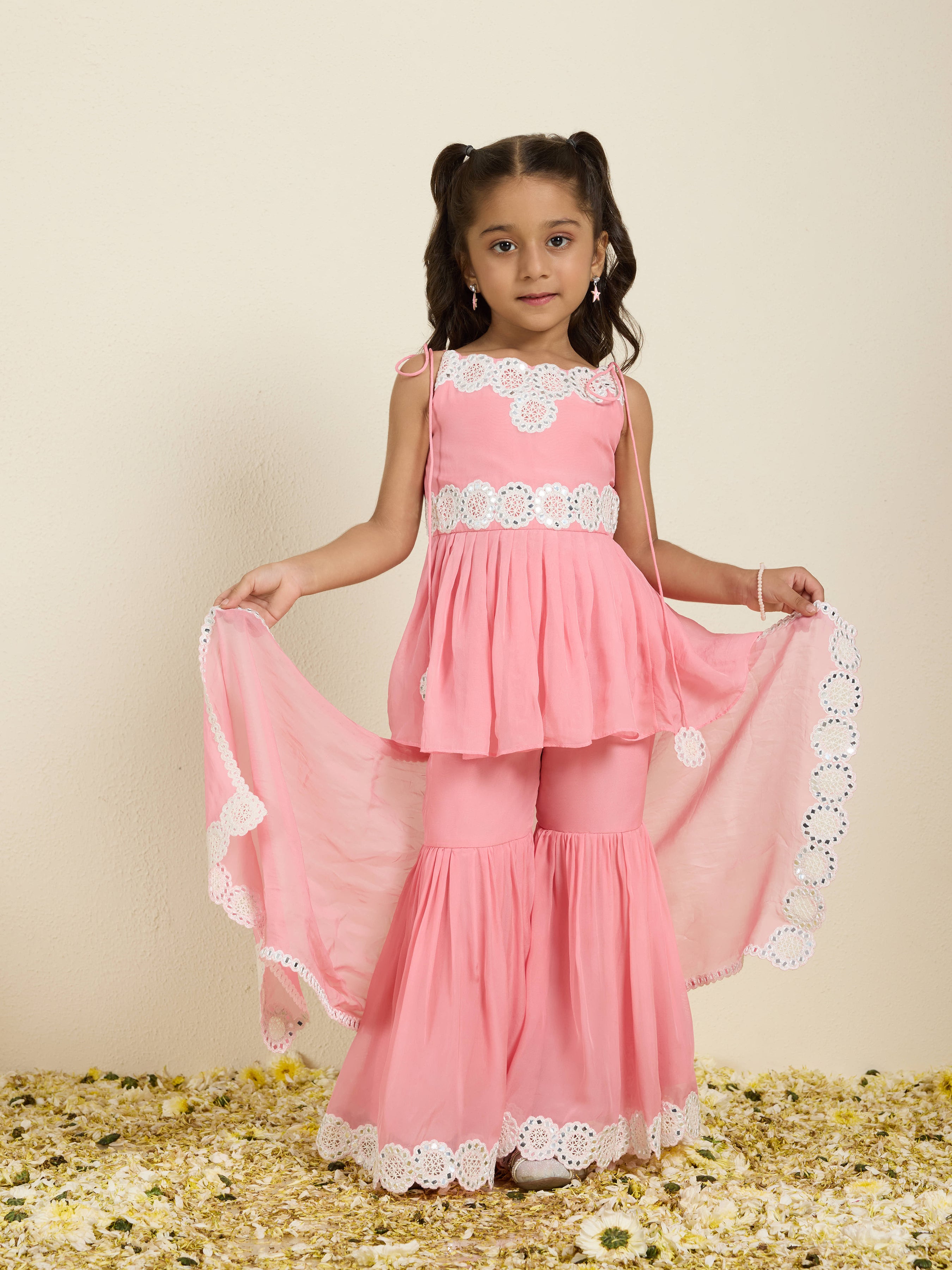 Sharara Set with Mirror Work Peplum Kurta and Dupatta