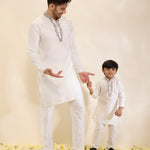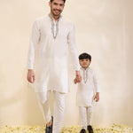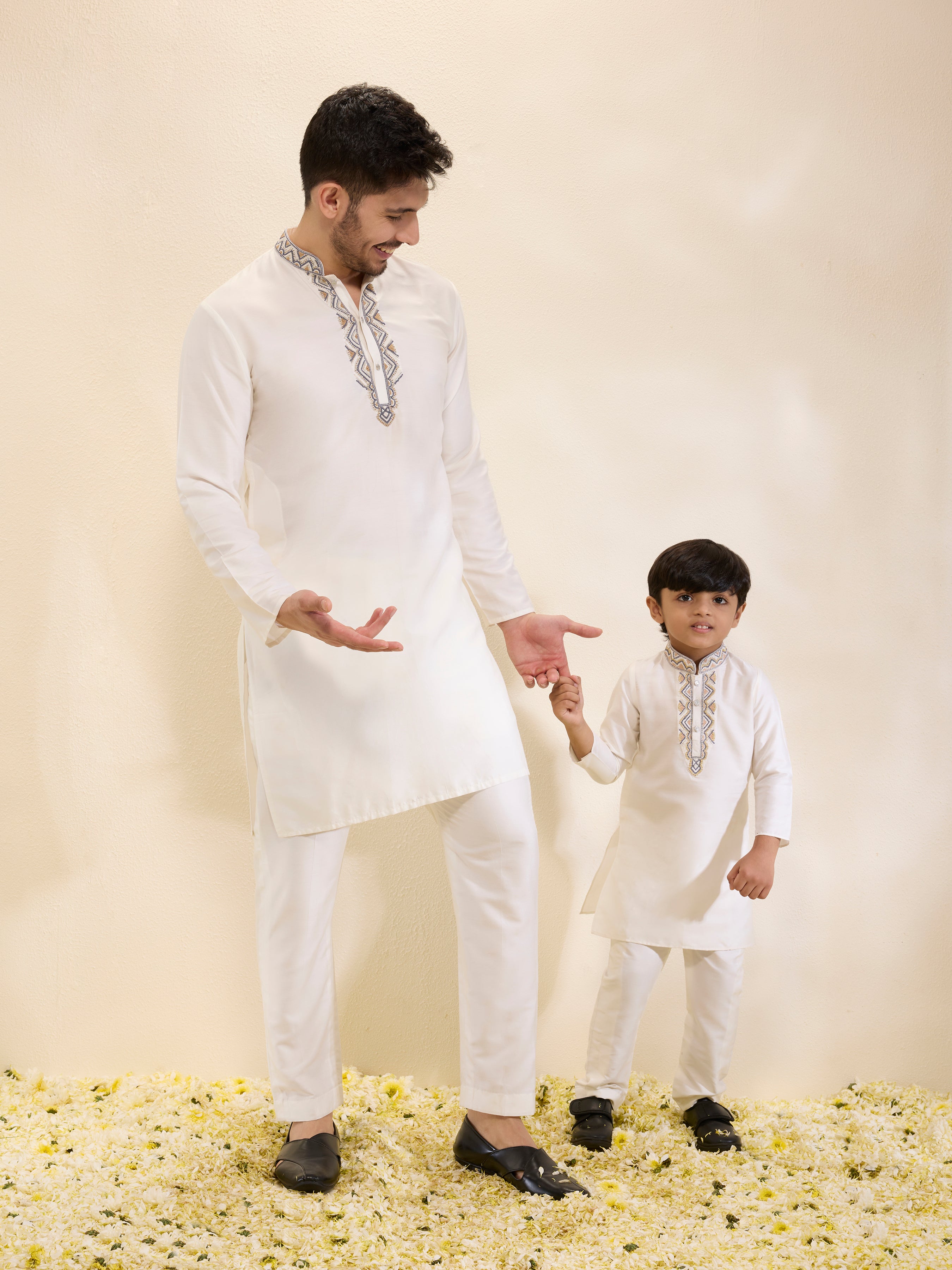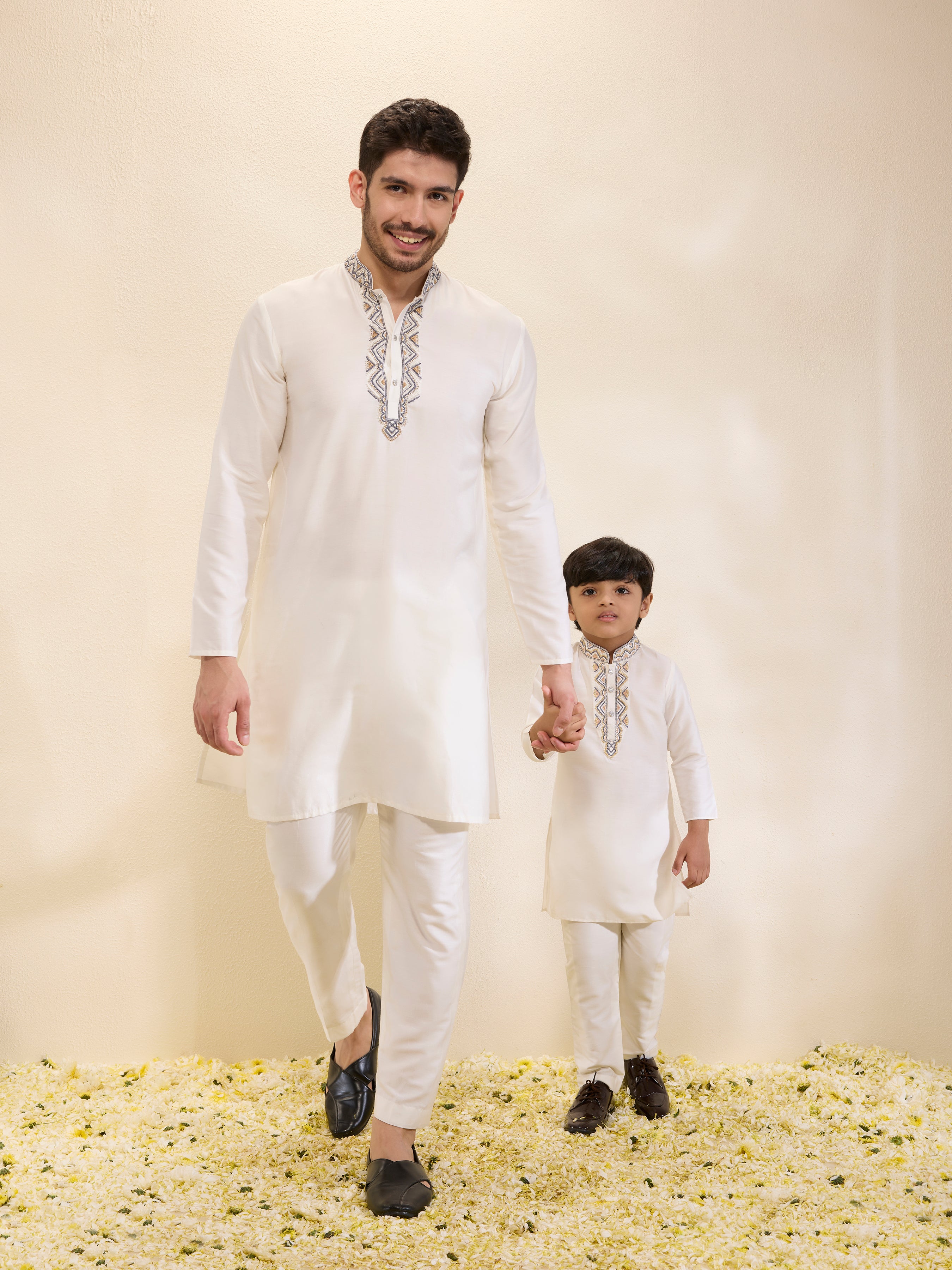 Father: Ivory Kurta Set with Hand-Embroidered Collar and Placket and Pants