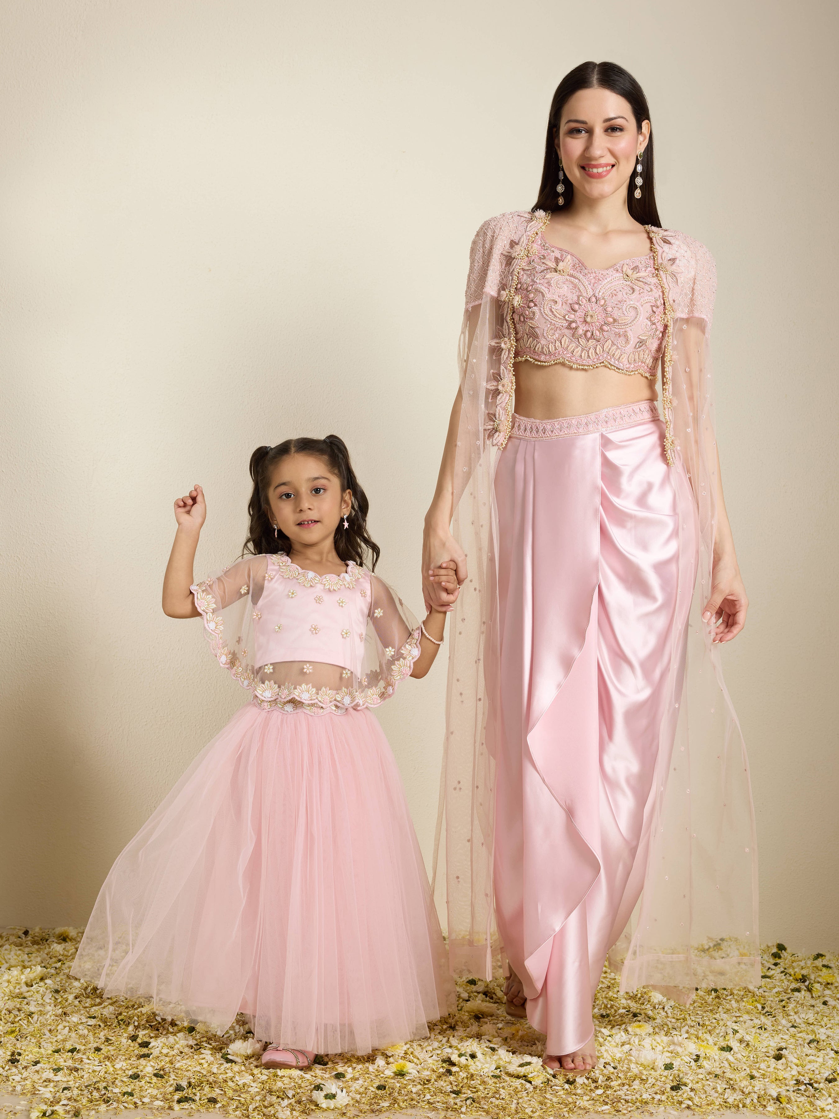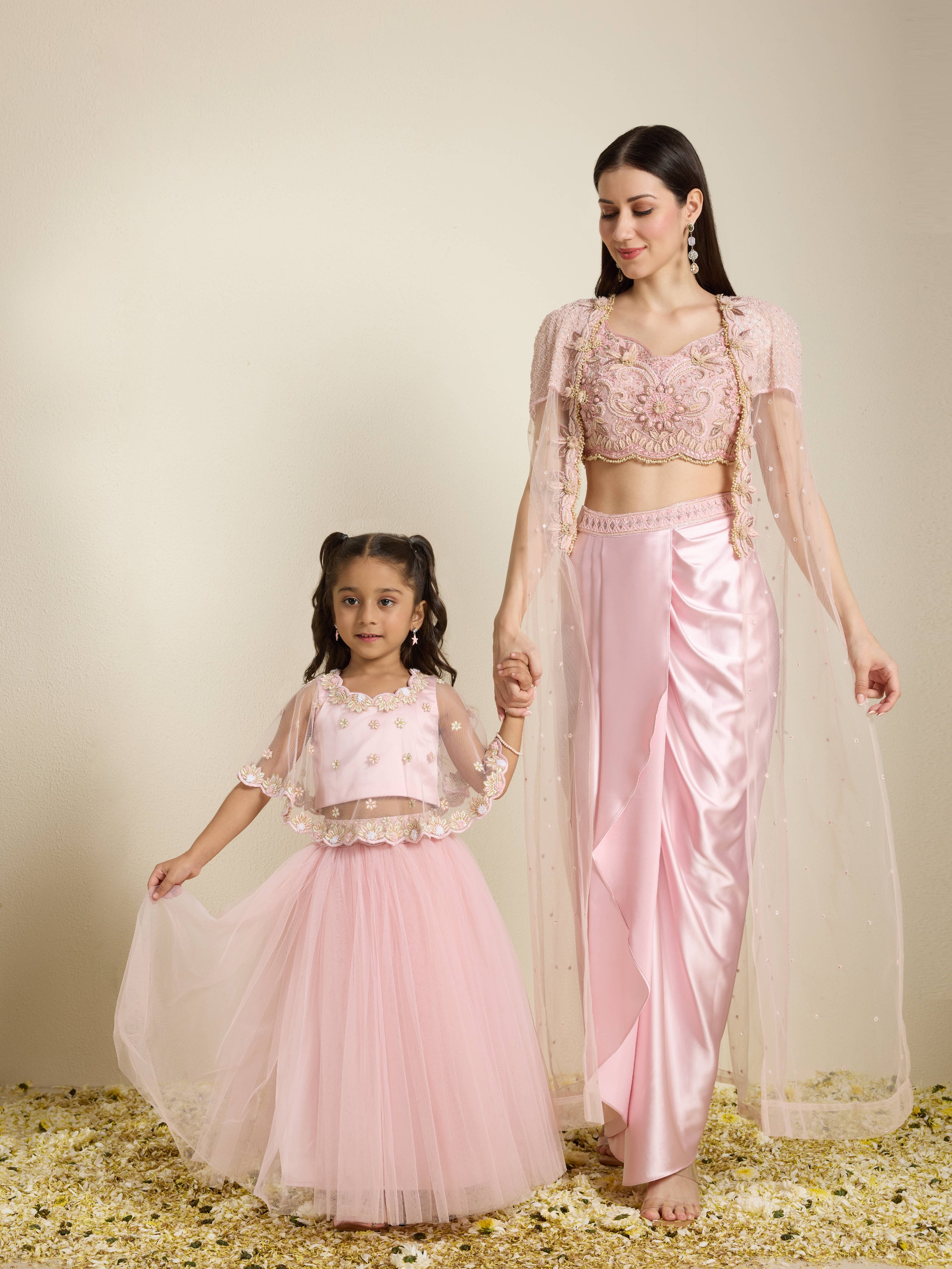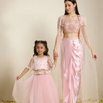 Sindhuja - Pink Draped Skirt & Kurta Set with Jackets, Mother & Daughter Set