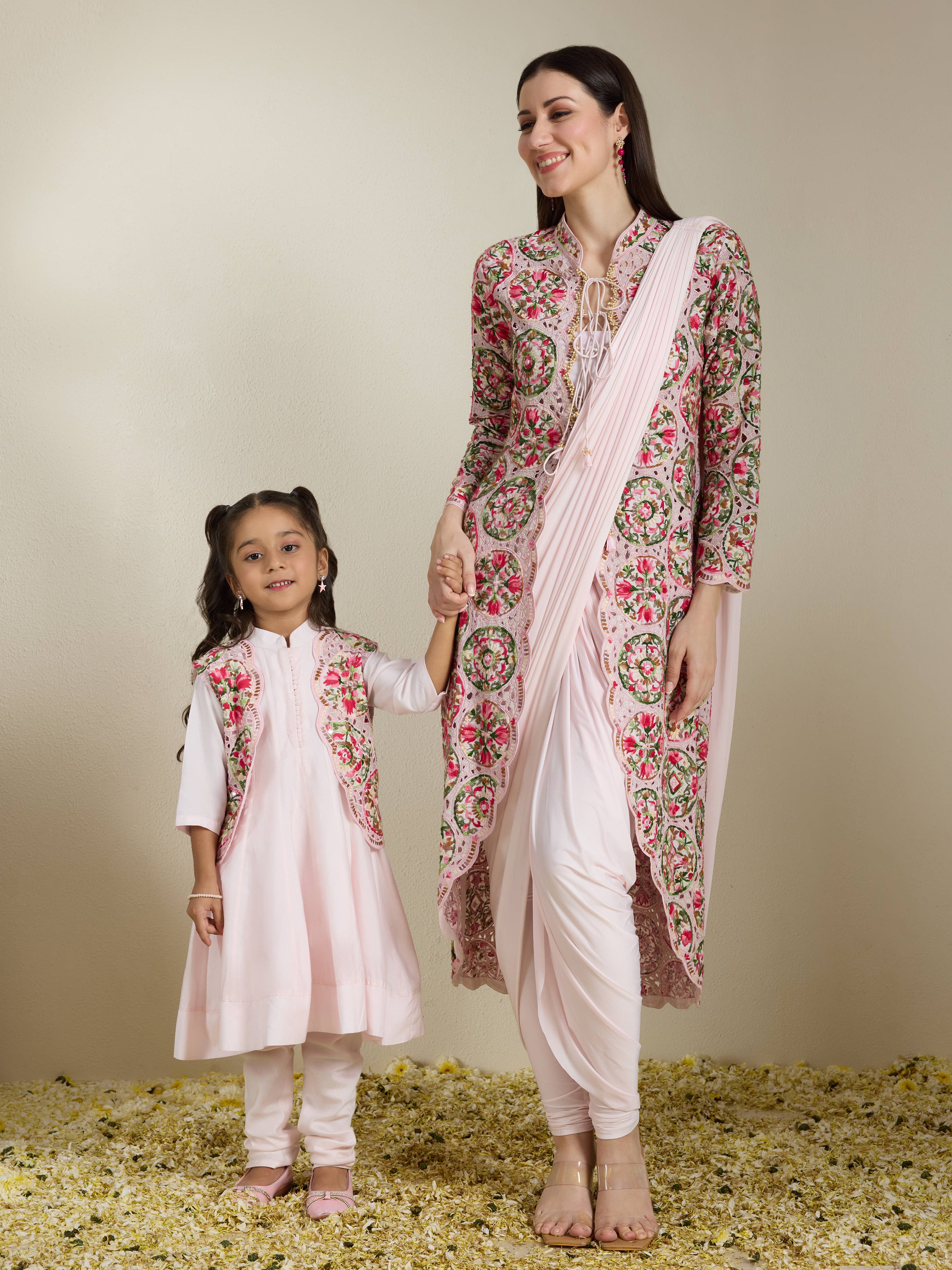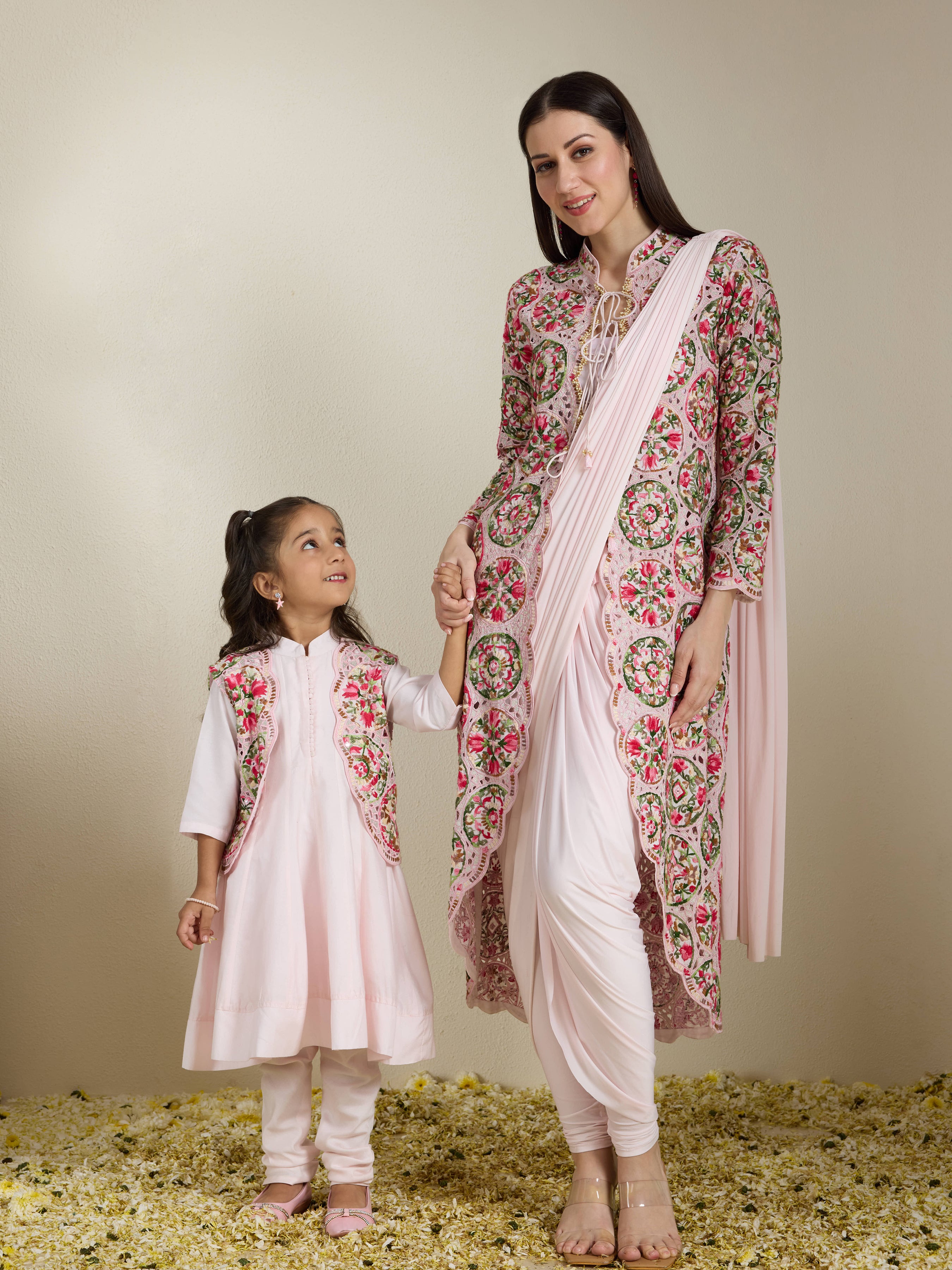 Sindhuja - Pre-Draped Saree & Kurta Set with Jacket, Mother & Daughter Set