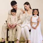Fabric: Light Gold Sherwani - Satin Linen Shimmer Fabric, Lehenga, choli and dupatta - Soft tulle, Kurta and dupatta - Georgette, Chudidar- Stretch lycra